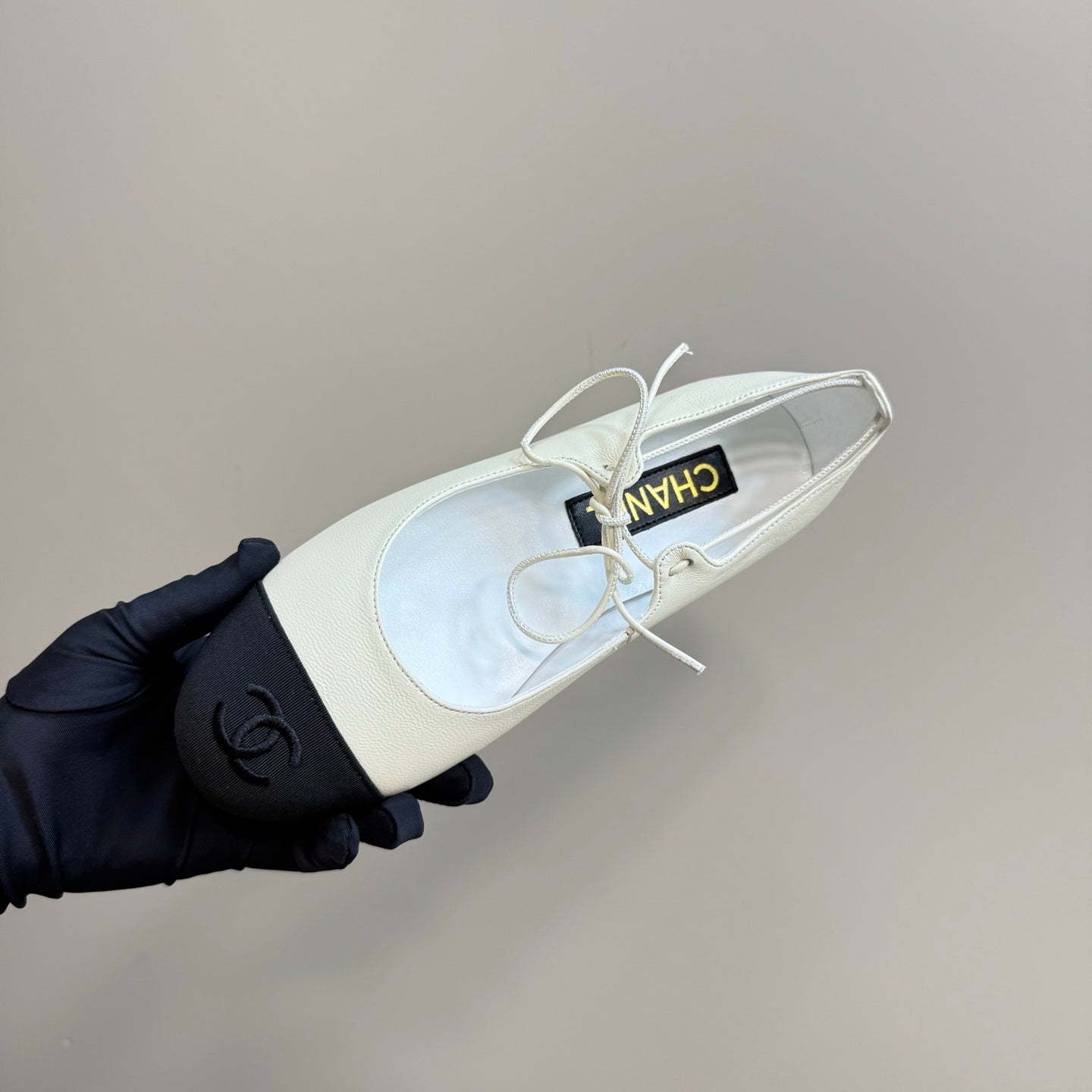 CC 25 Mary Jane Flat White Leather with Fabric 239409