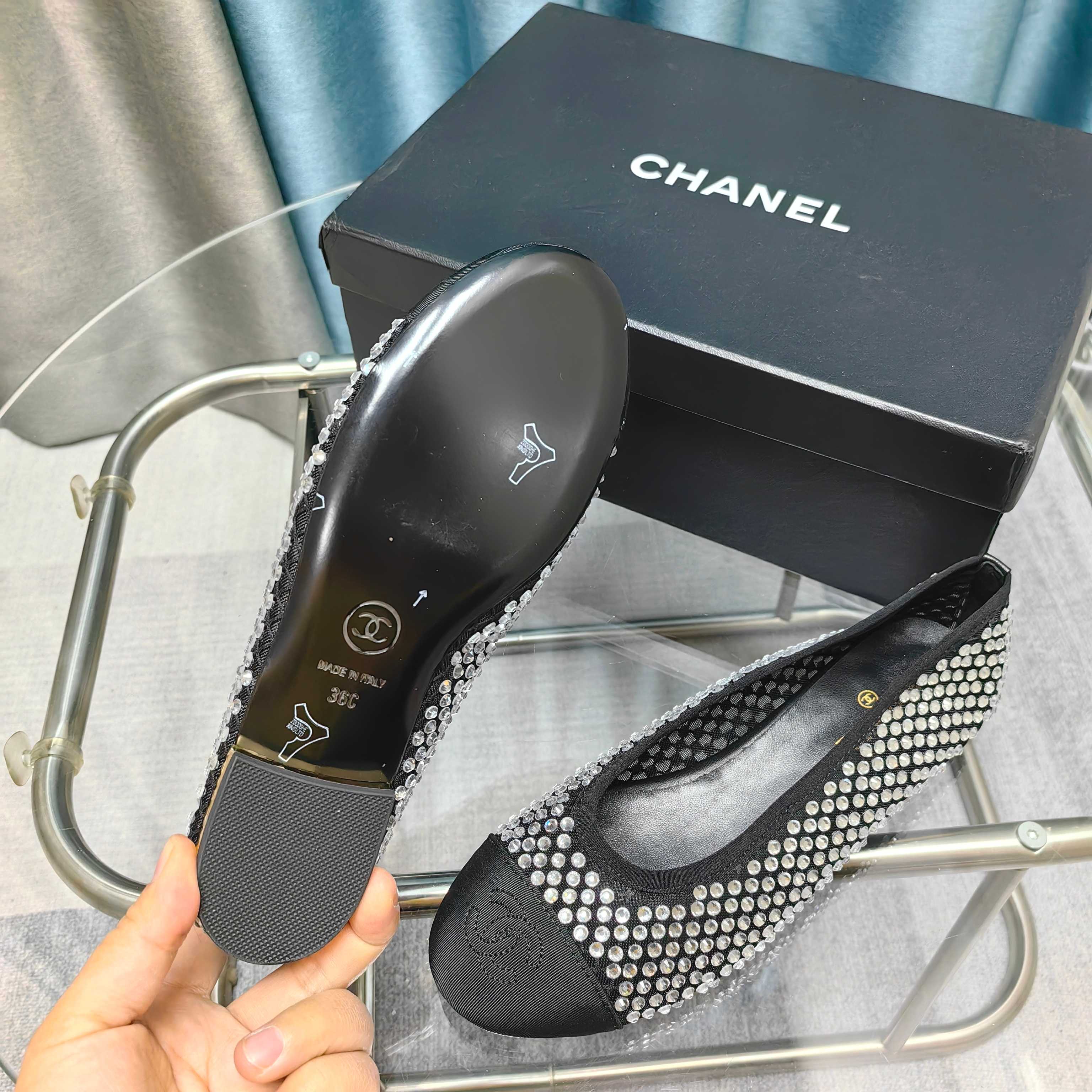 CC 25P Ballet Flat Black Calfskin Yellow Patent Calfskin
