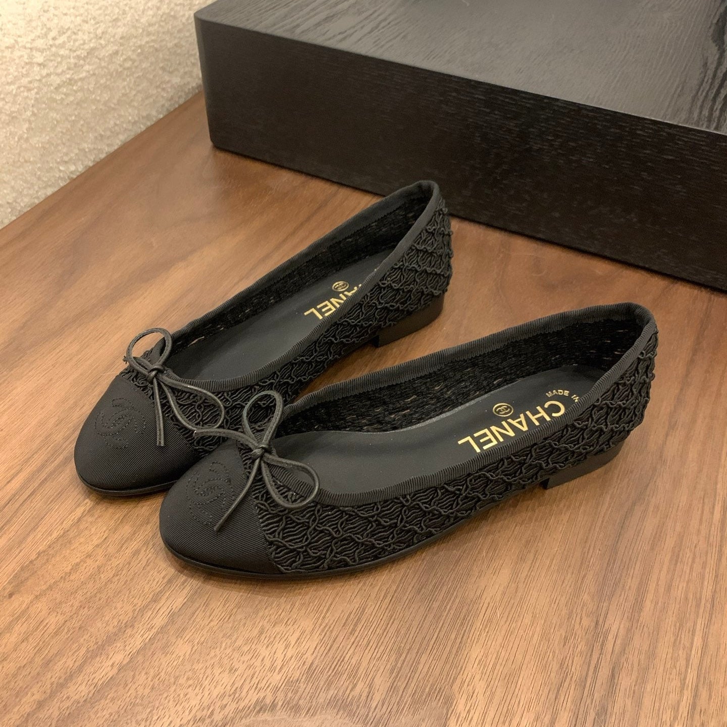 CC 25C Ballet Flat Black Mesh Fabric Grosgrain