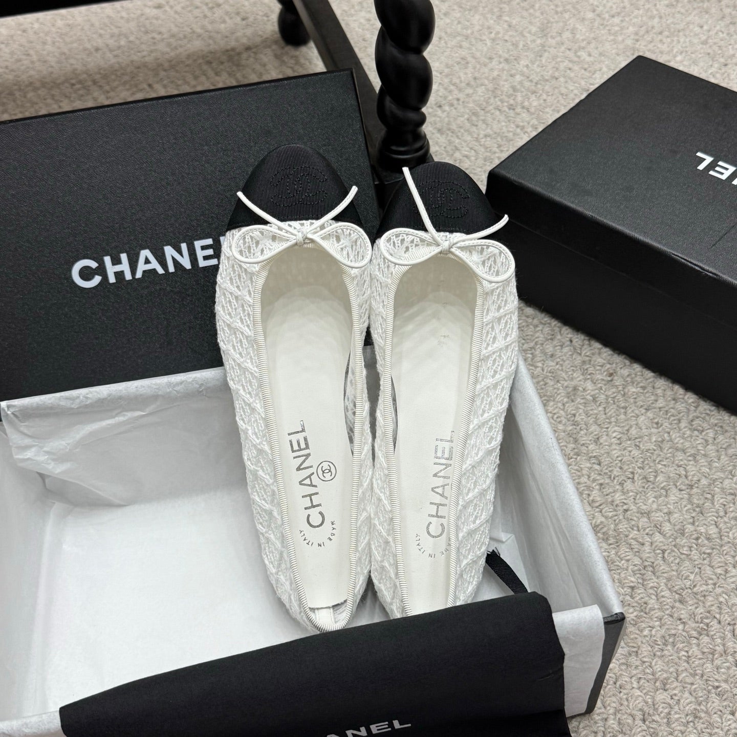 CC 25 Ballet Flat Large Logo White Quilted Calfskin