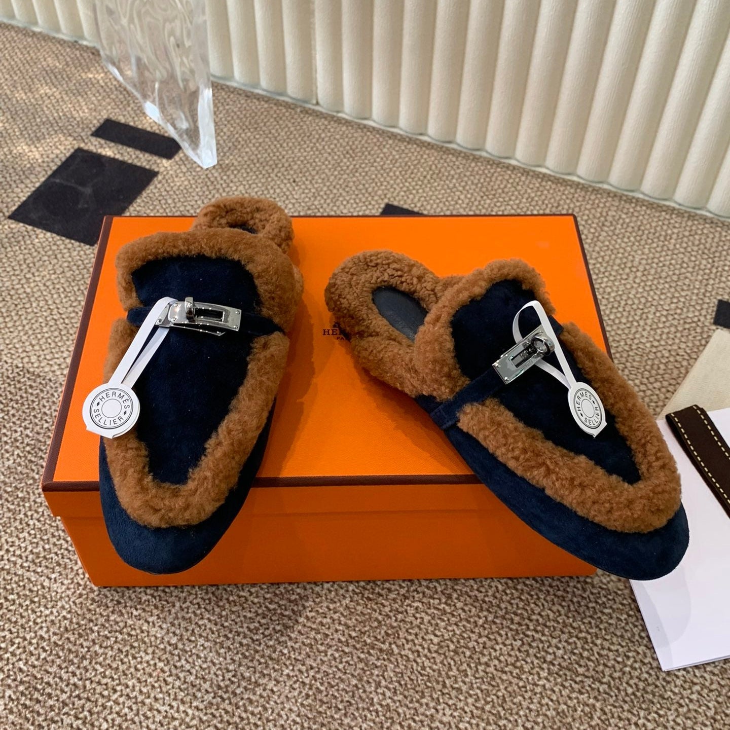 HM Oz Mule In Dark Pastel Blue Suede Lined With Wool Fleece 113199