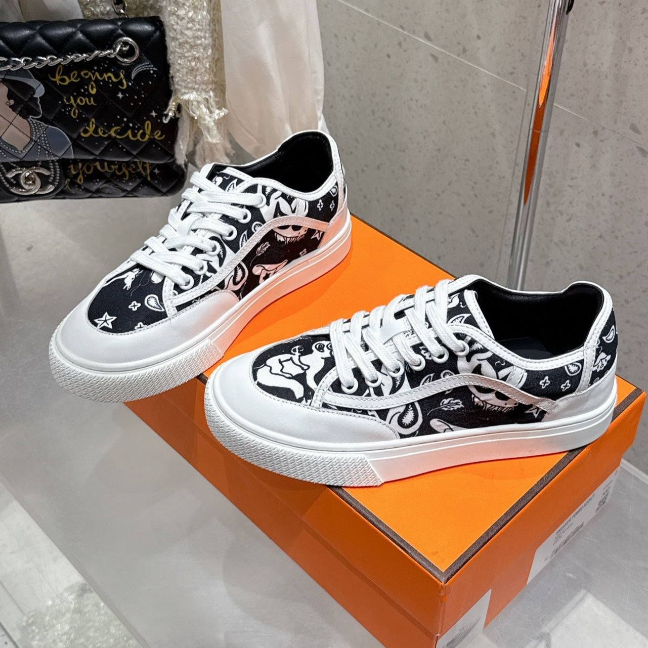 HM Get Sneaker Blanc Prunoir Canvas and Calfskin 204766