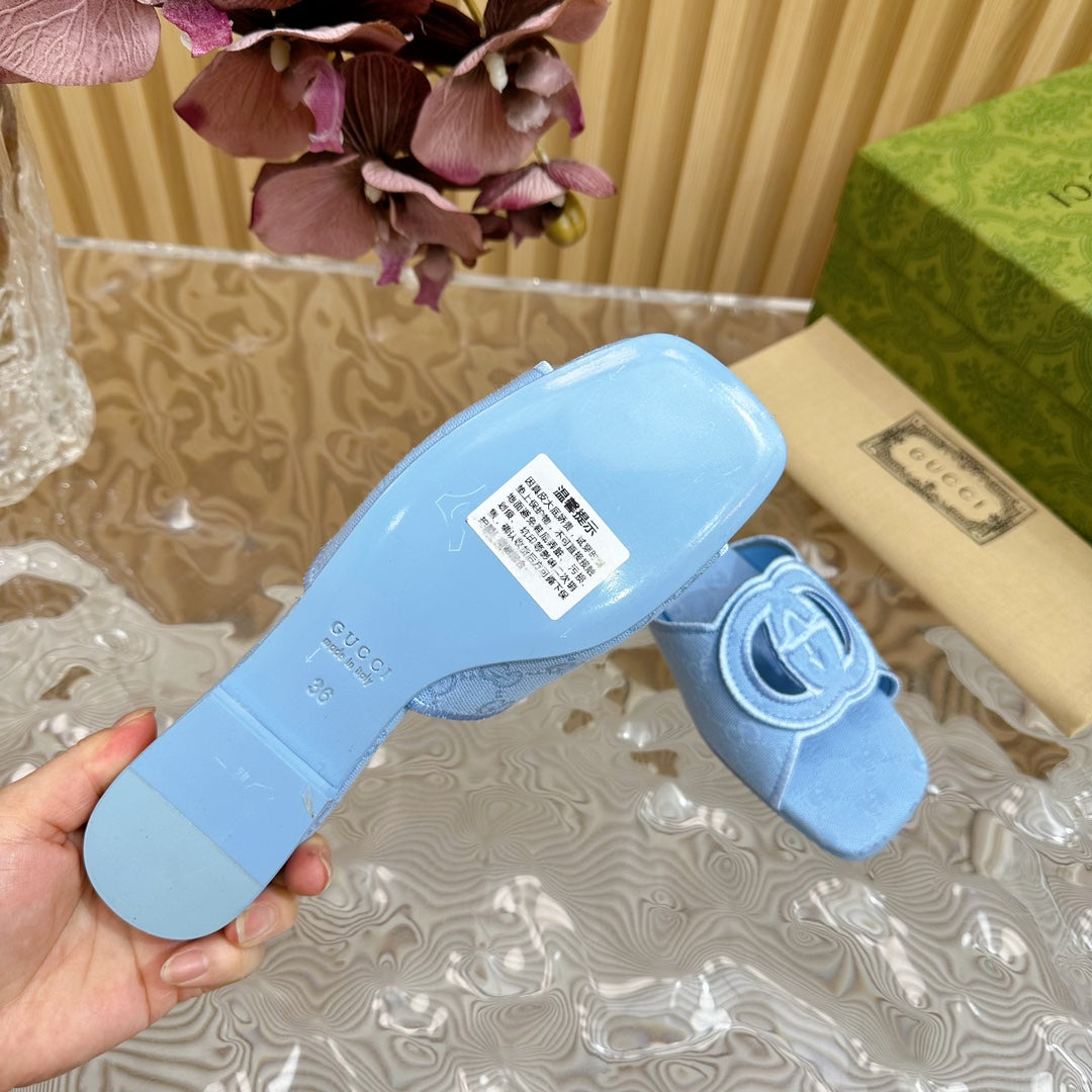 GG VELVET HIGH HEEL SANDALS WITH BEAUTIFUL LOGO DETAILS BLUE SKY