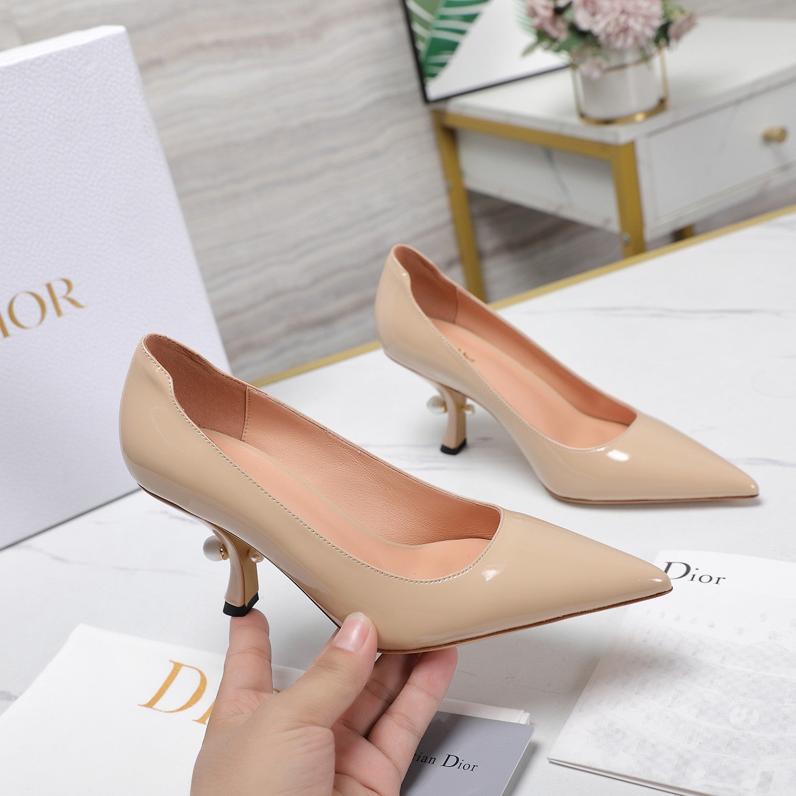 CD Pumps 65mm Glossy Beige Cowhide