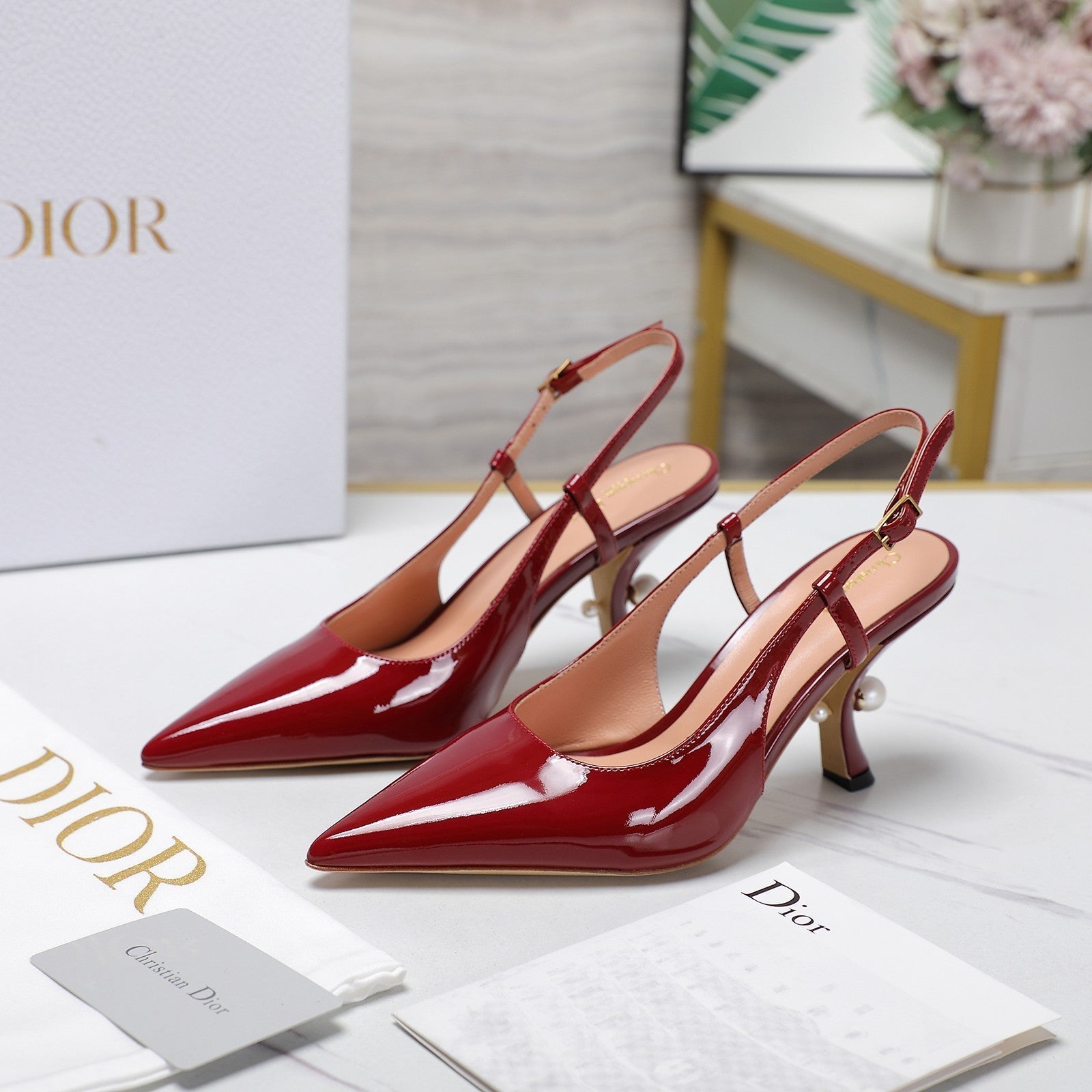 CD Slingback 65mm Glossy White Cowhide
