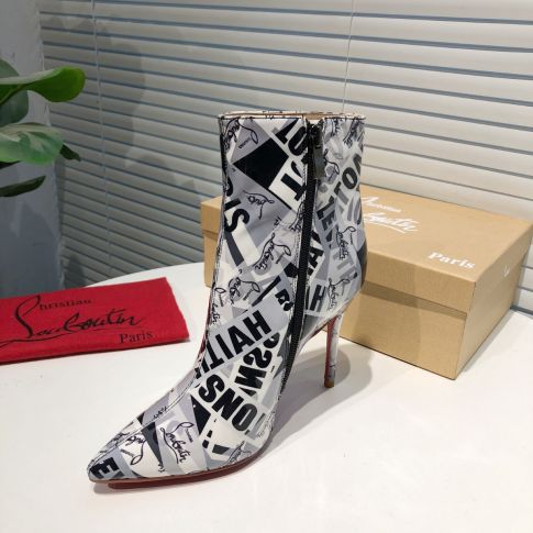 CL Women Zipper Ankle Boots 100mm Calfskin Black