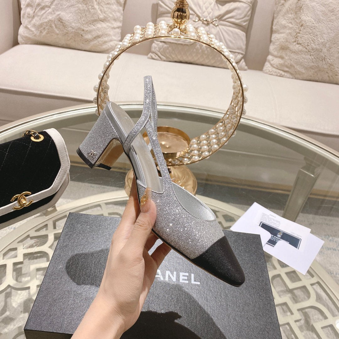slingback 2.5 glietter grey black grosgrain