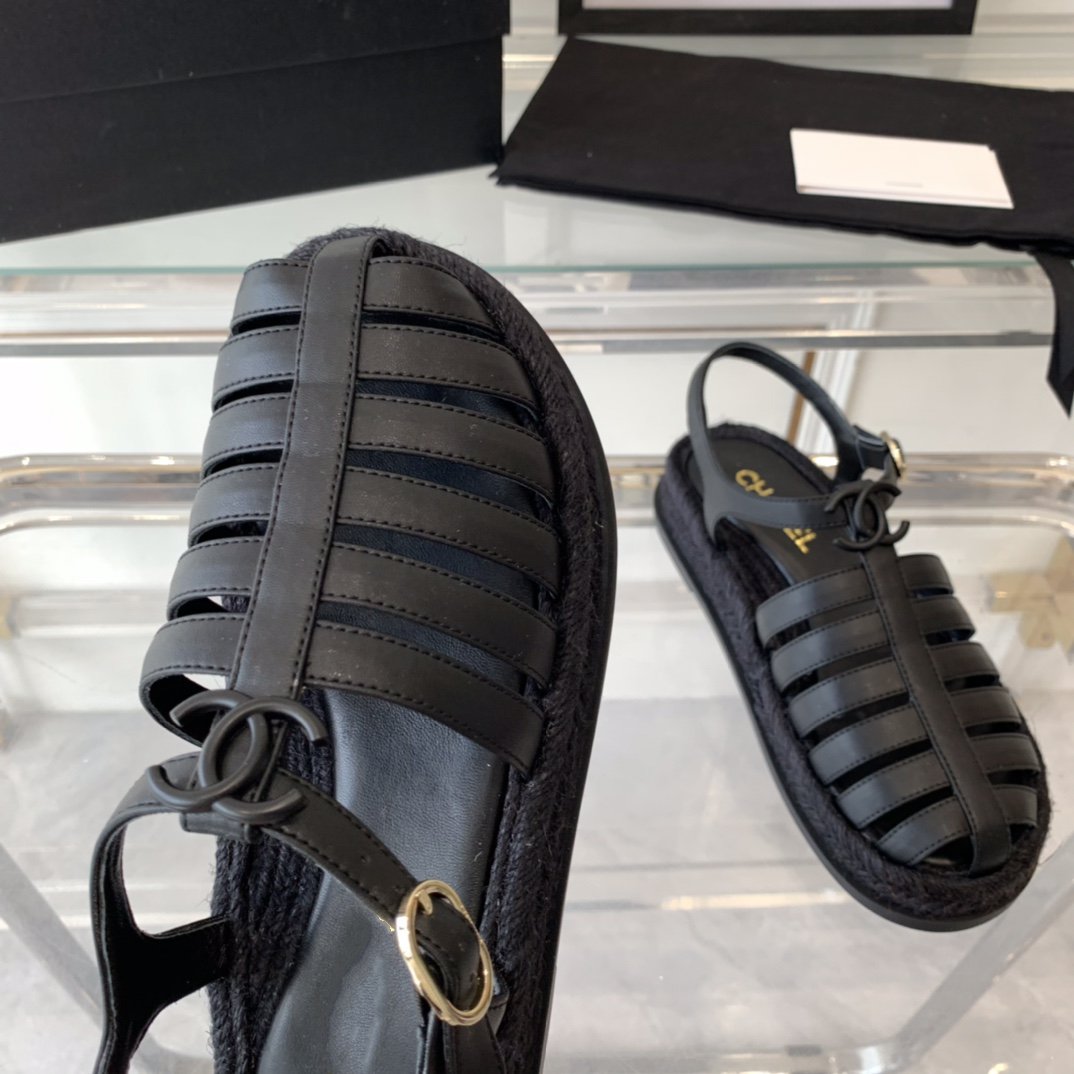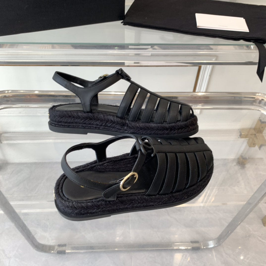 cc roman sandals all black lambskin