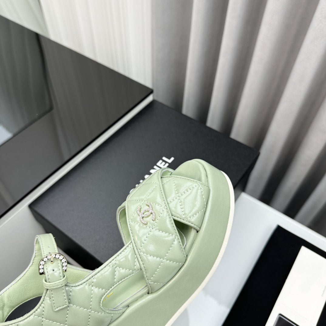 high heel sandals light green quilted lambskin 95