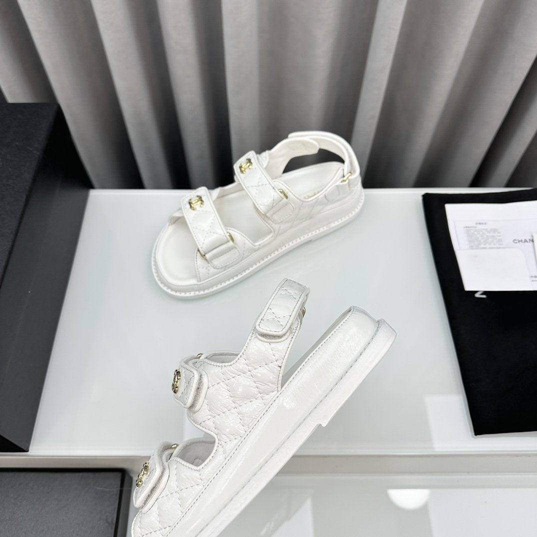 cc sandals white quilted lambskin