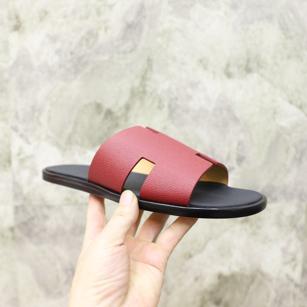 HM IZMIR SANDAL BLACK AND CHERRY CALFSKIN