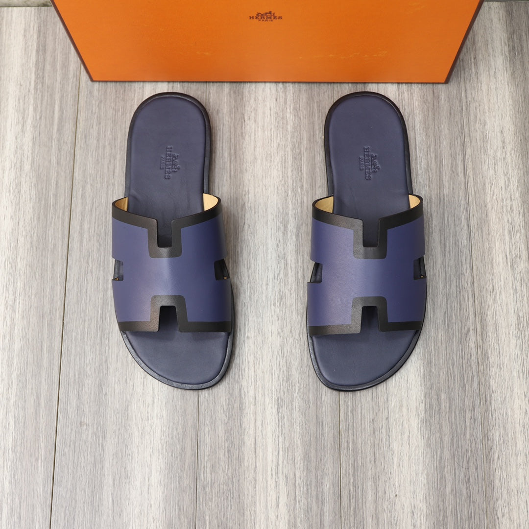 HM IZMIR SANDAL BLACK AND NAVY CALFSKIN