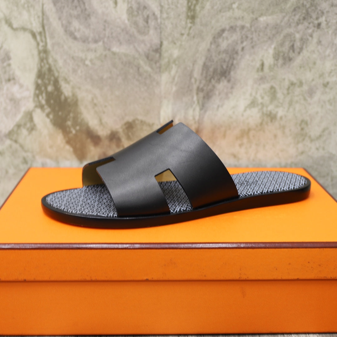 HM IZMIR SANDAL BLACK WITH WHITE ICON CALFSKIN