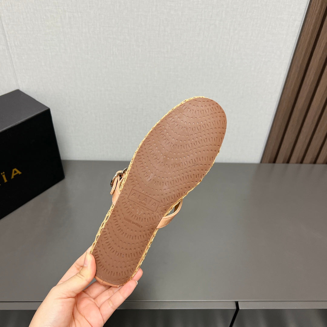 ALAIA FLAT MULE IN SEPIA TAN LAMBSKIN WITH GOLD HARDWARE