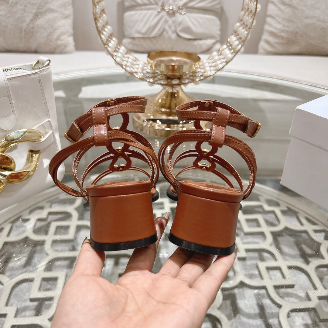 HIGH SANDAL 45MM IN RUSSET BROWN LAMBSKIN