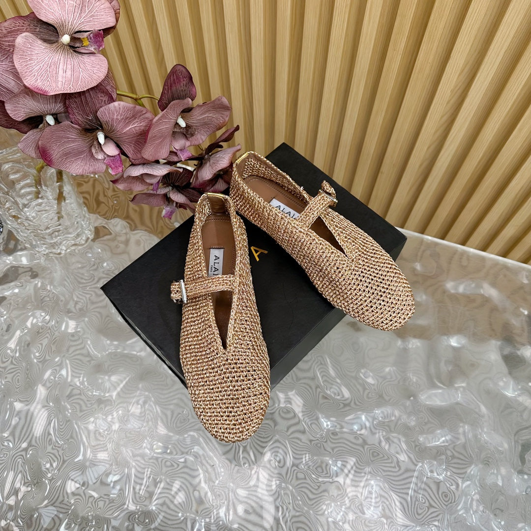Alaia Ballet Flats In Gold Woven Cowhide 102288