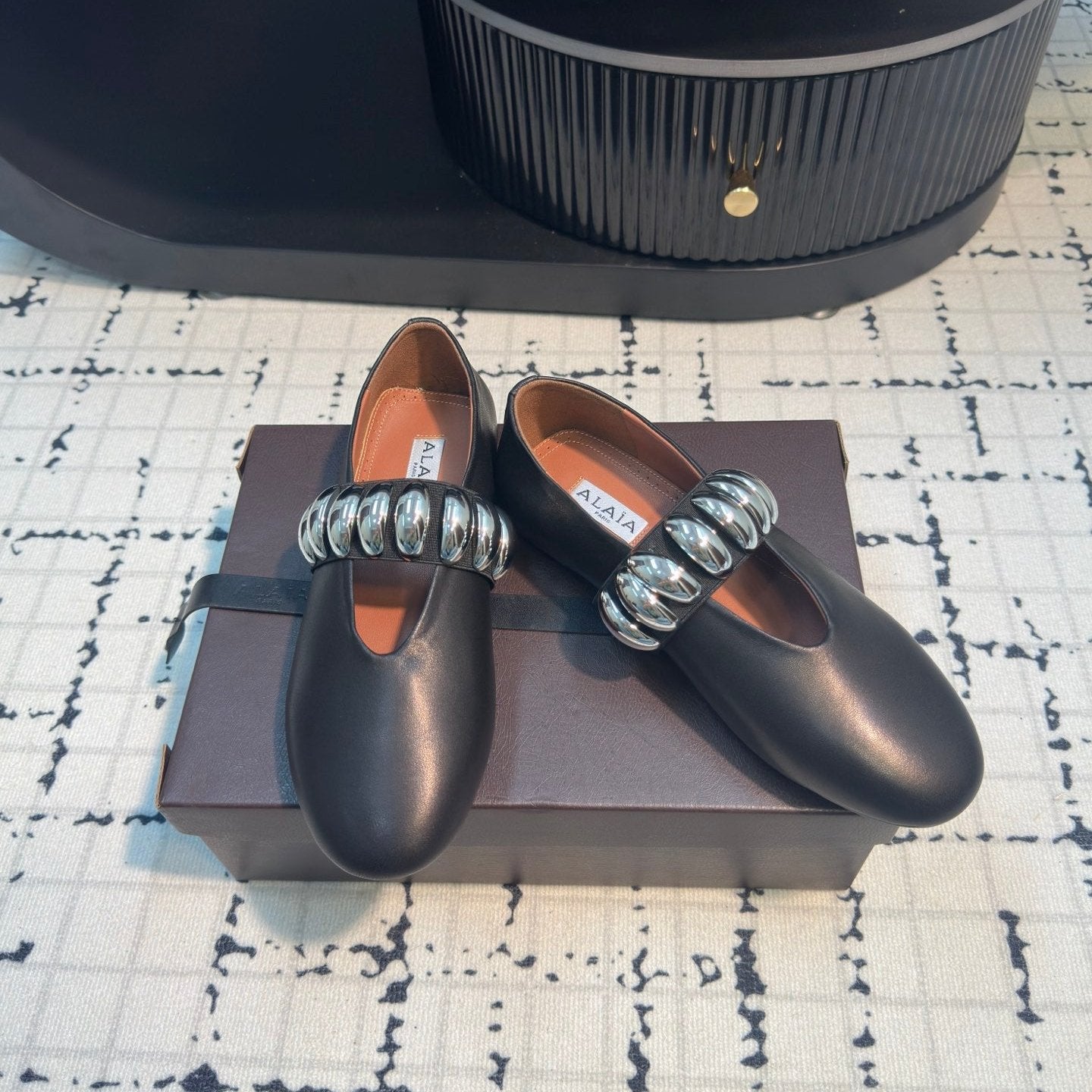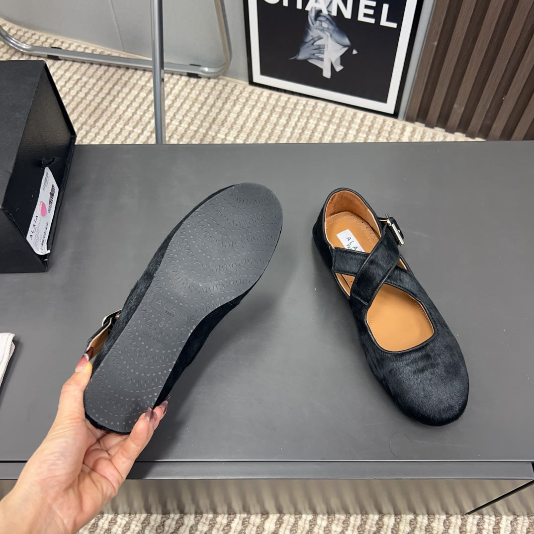 Alaila Criss Cross Ballet Flats In Black Glossy Calfskin 996027