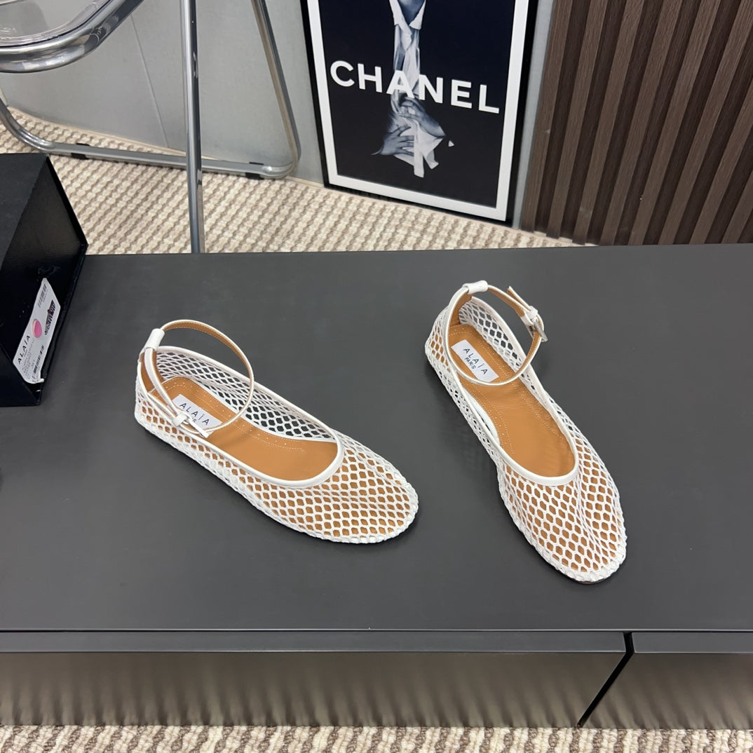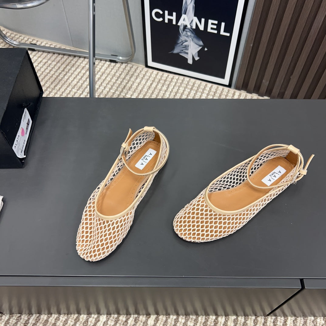 Alaila Ballet Flats With Studs On Fishnet In Black 975753