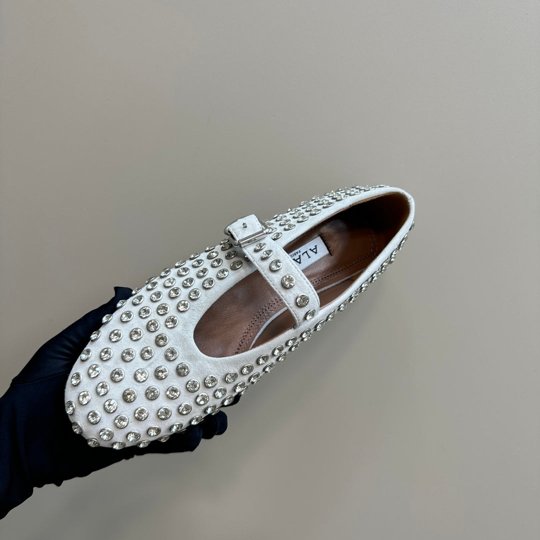 Alaia Strass Suede Ballet Flats In Brown 999324