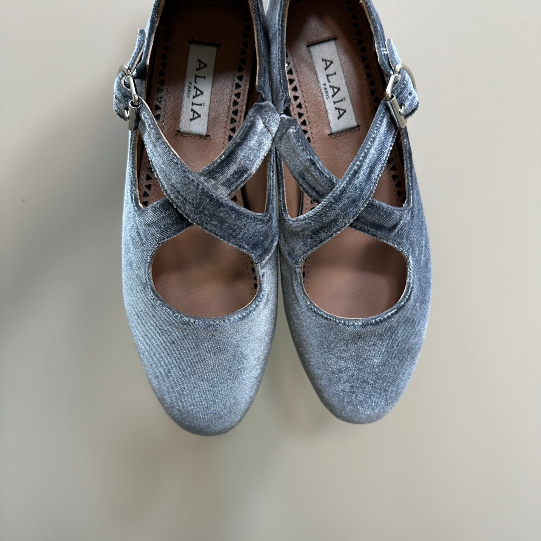 Alaia Strass Ballet Flats In Deep Blue Suede Stone 935185