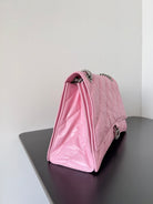 CRUSH CHAINED BAG 32 IN PINK QUILTED CRUSHED CALFSKIN SILVER HARDWARE