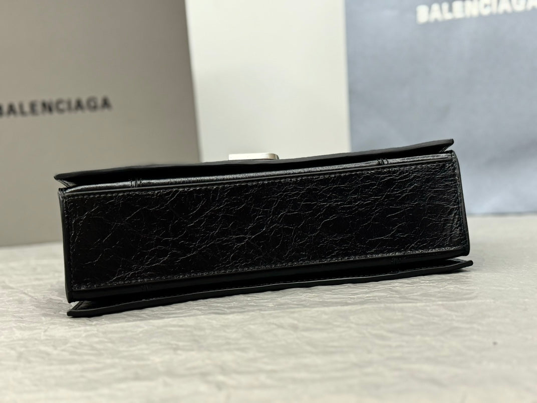 CRUSH SHOULDER BAG 25 IN BLACK CRUSHED CALFSKIN LEATHER STRAP SILVER HARDWARE