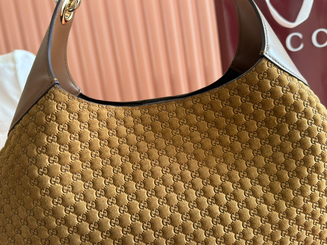 Gucci Body Double Lock Handbag Brown Velvet Embossed Leather 244512
