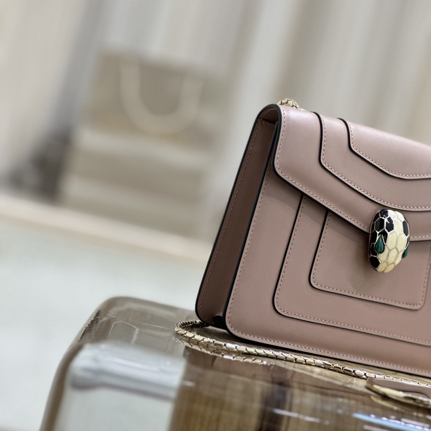 SERPENT ELLIPSE SHOULDER AND CROSSBODY 25.5CM PINK CALFSKIN