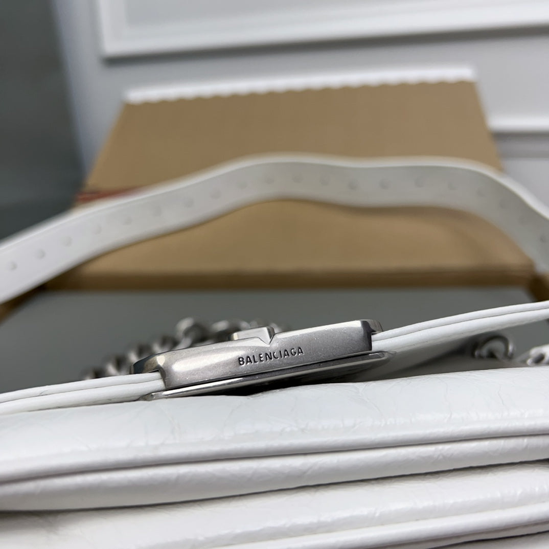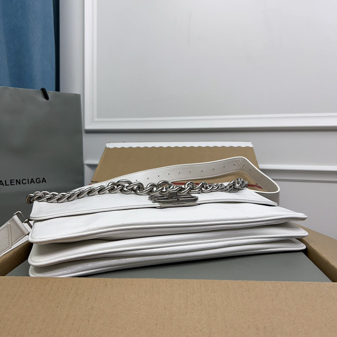 CRUSH CHAINED BAG 32 IN WHITE QUILTED CRUSHED CALFSKIN SILVER HARDWARE