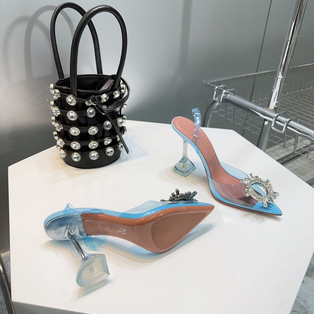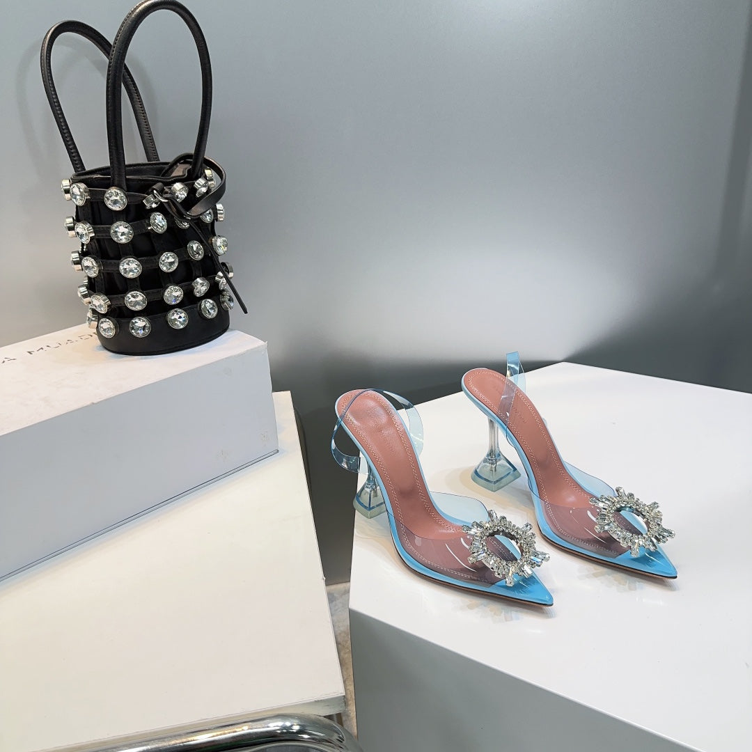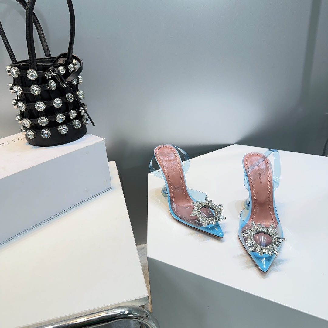 Amina & Muaddi 2025 Slingback Blue PVC Sheepskin 505194