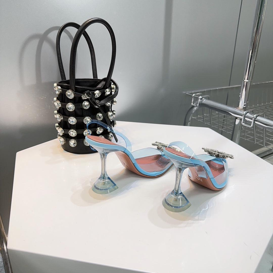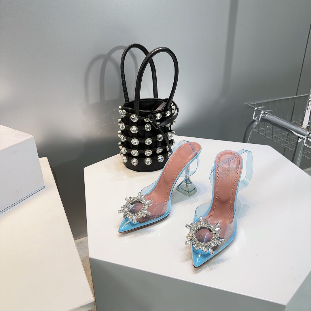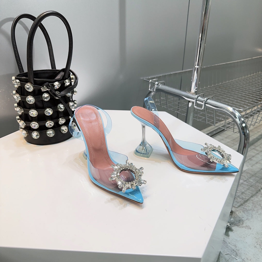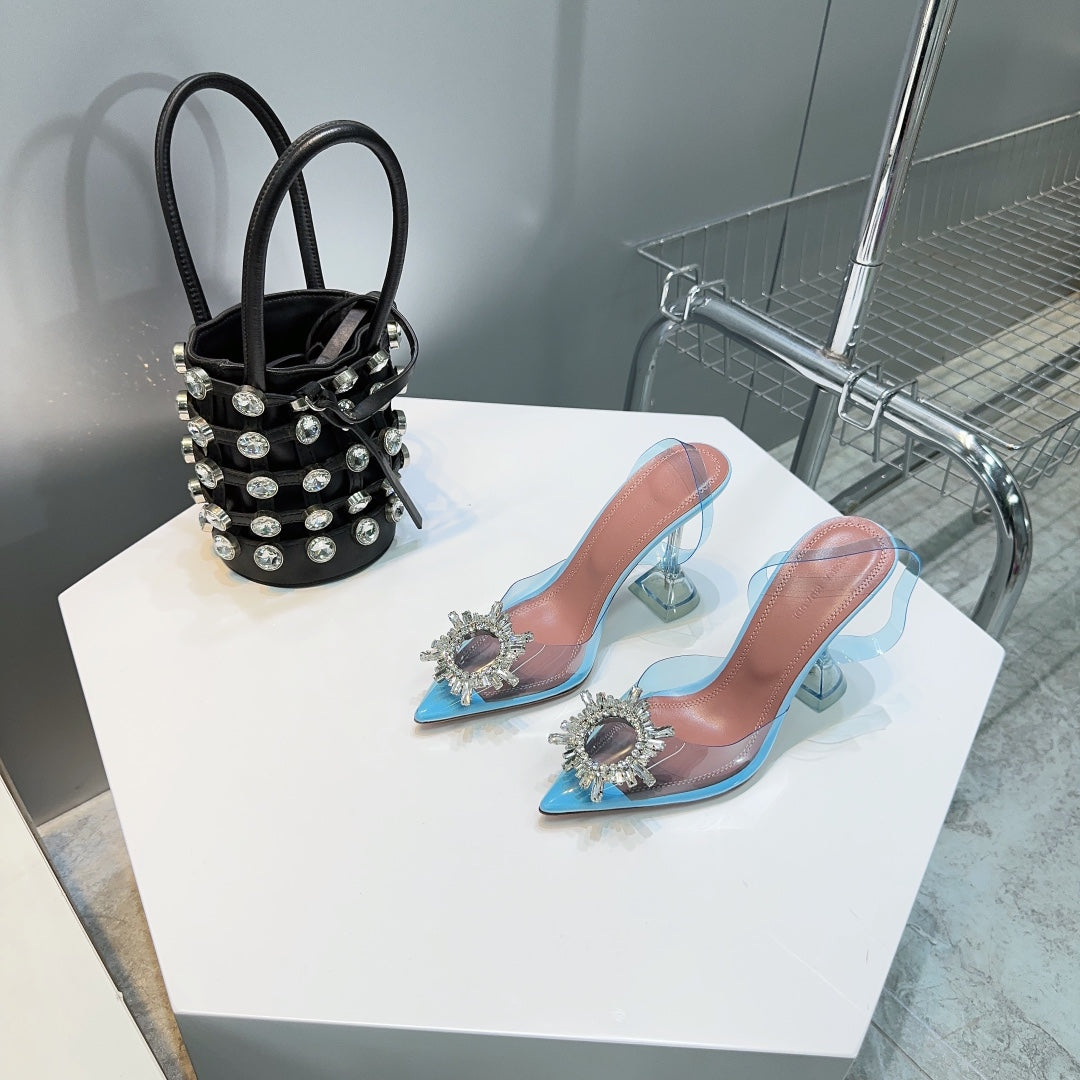 Amina & Muaddi 2025 Slingback Blue PVC Sheepskin 505194