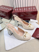 GC Horsebit Slingback with Crystal 95mm Ivory Patent Leather 294595