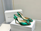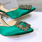 Manolo Buckle Slingback 7cm Green Silk 208029