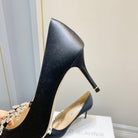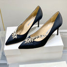 Manolo Wheat Ear Rhinestone High Heels Pumps Black Silk Fabric 327446