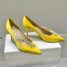 Manolo Wheat Ear Rhinestone High Heels Pumps Yellow Silk Fabric 327450