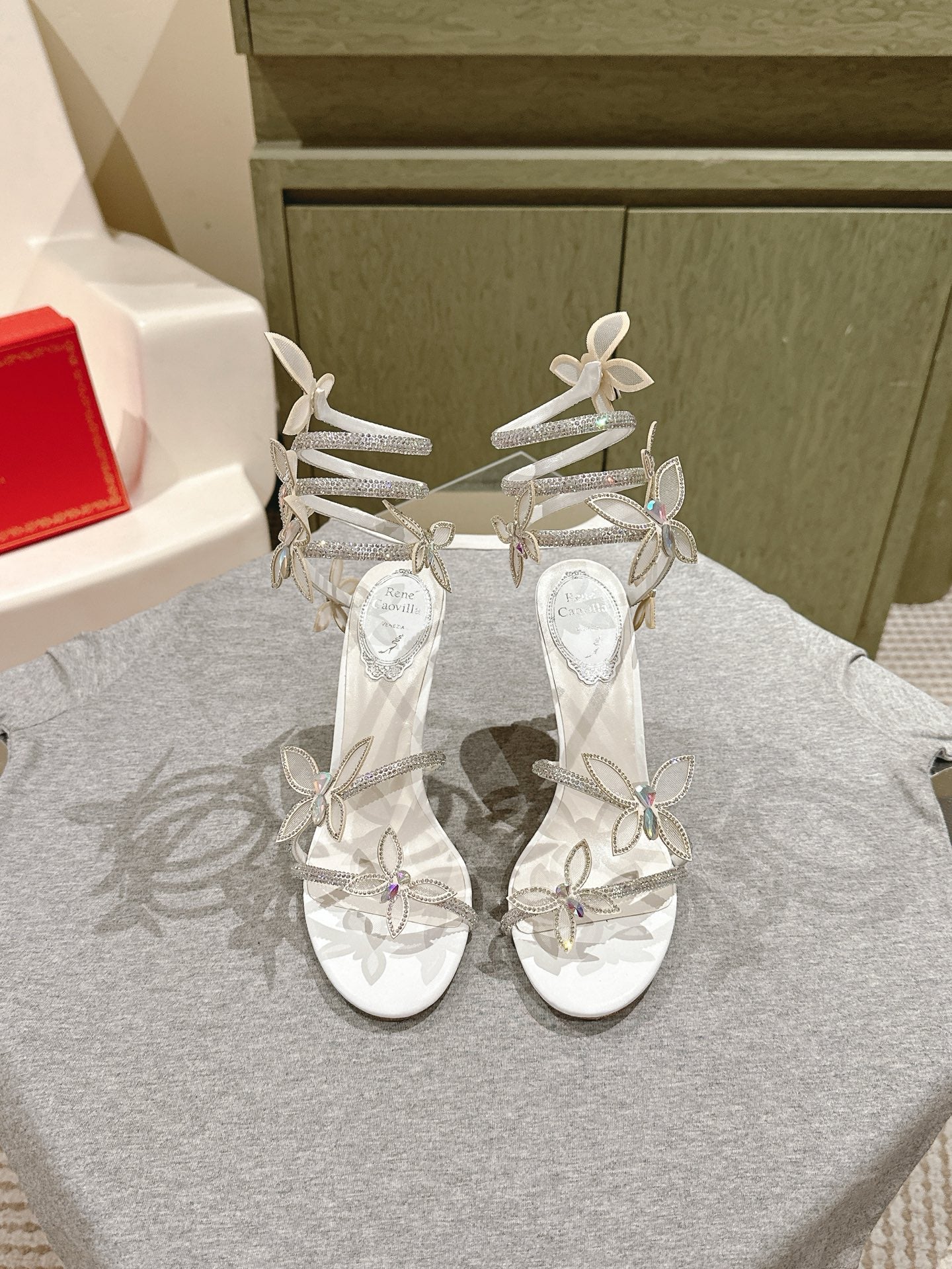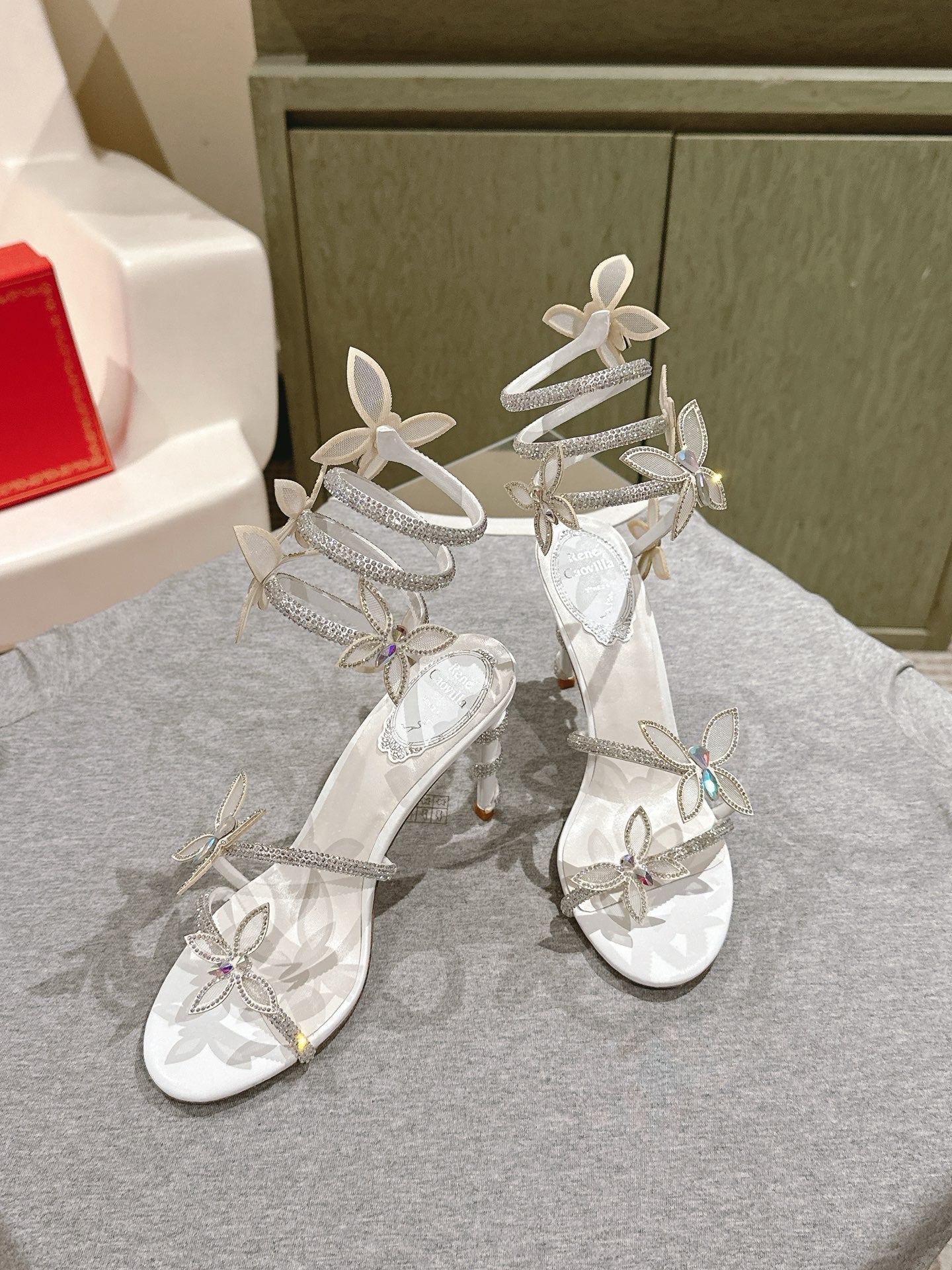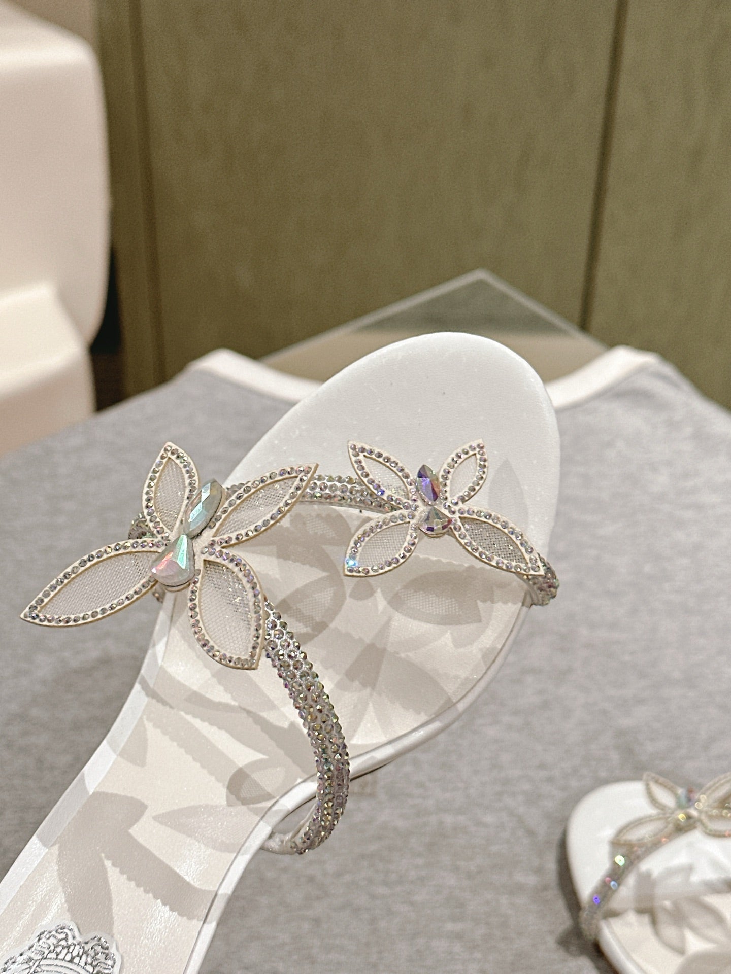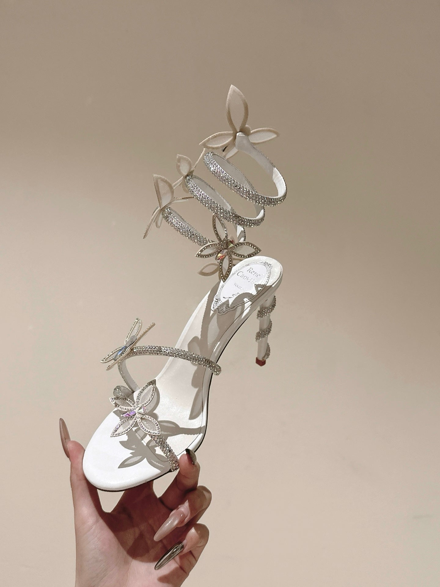 RC 25 Butterfly High-Heeled Sandals White Silk Rhinestones