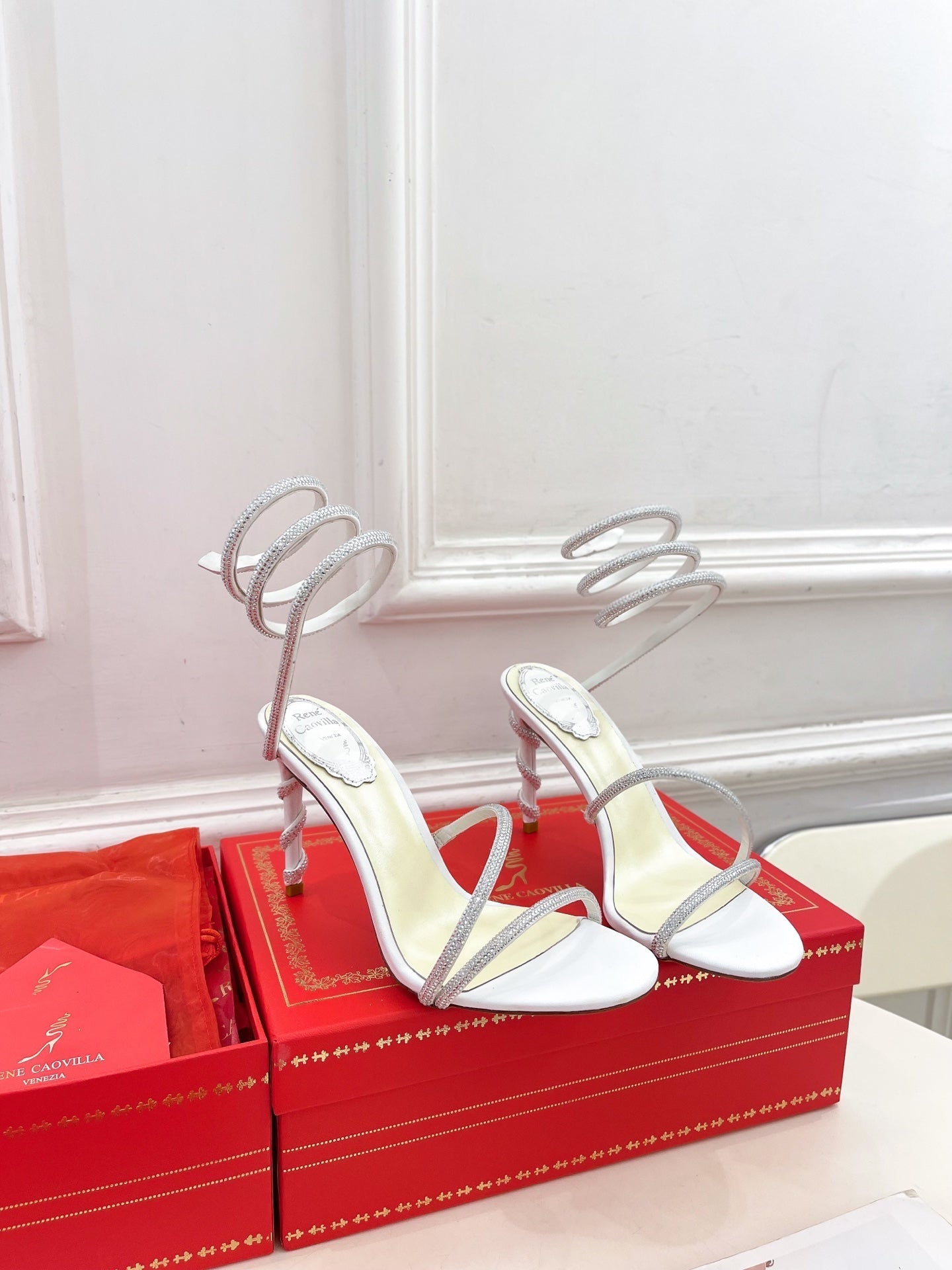 RC 25 Crystal Diamond Snake-Shaped High-Heeled White Silk Rhinestones 253543