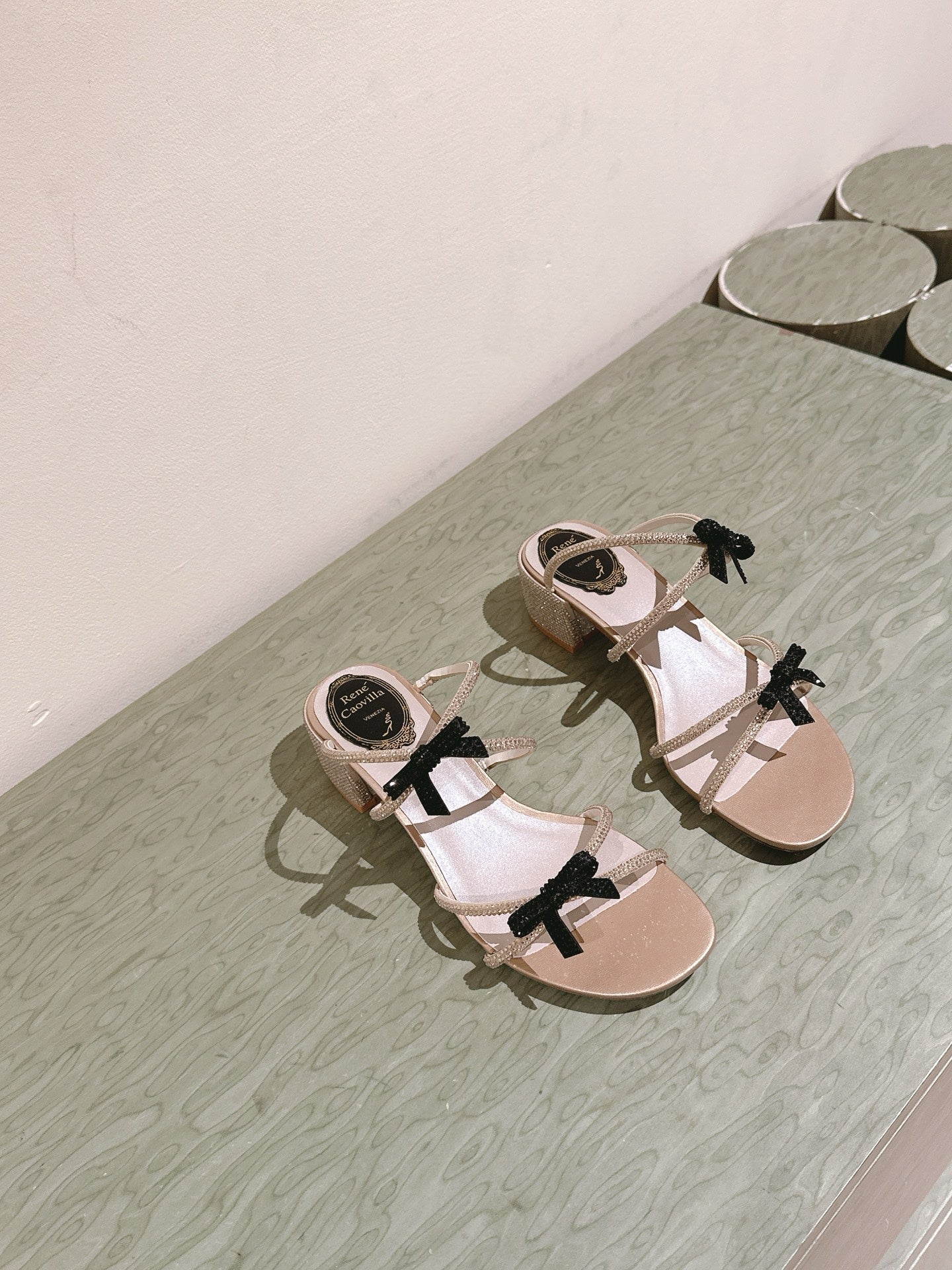 RC 25 Diamond Bow Attached High Heeled Pink Nude Silk Rhinestones 268054