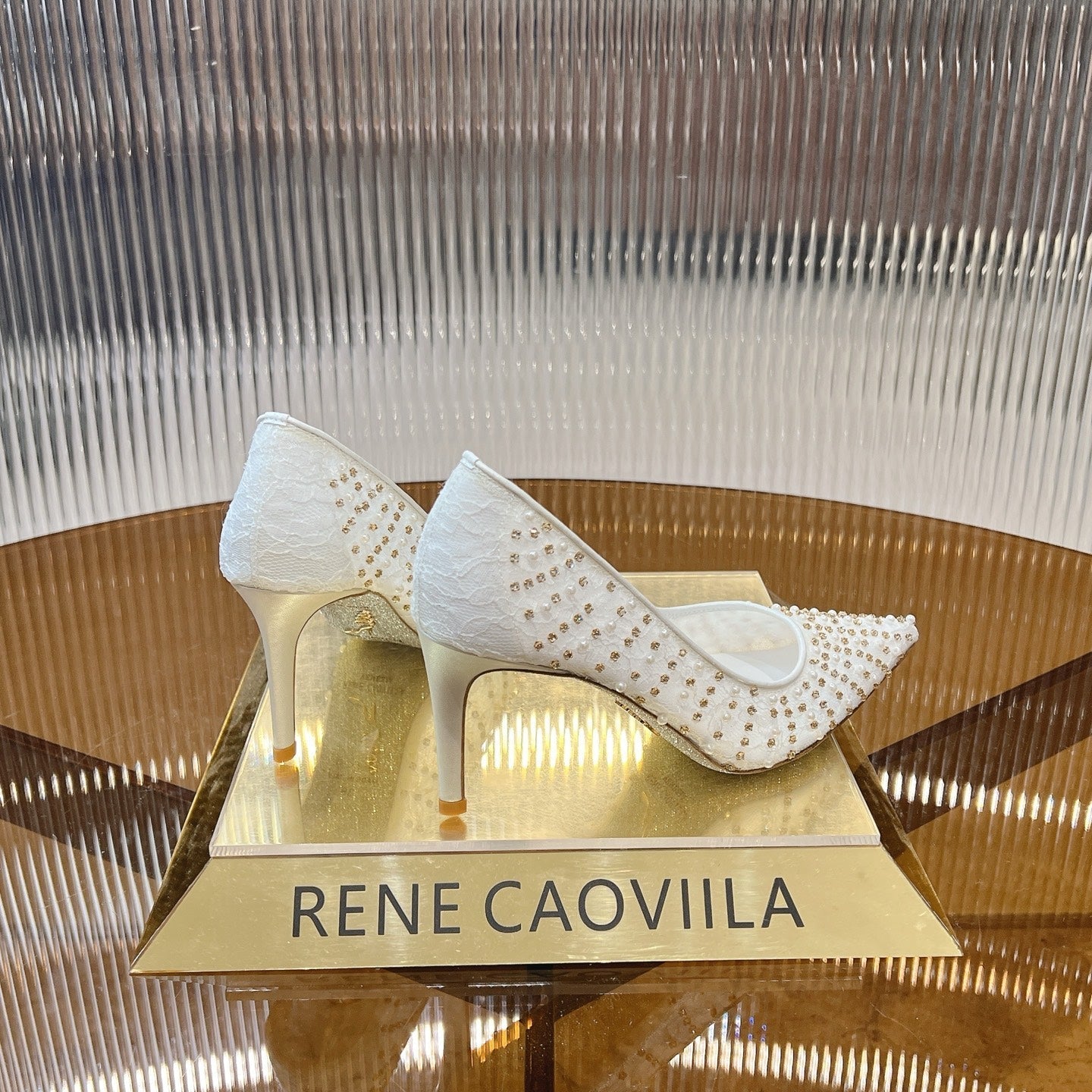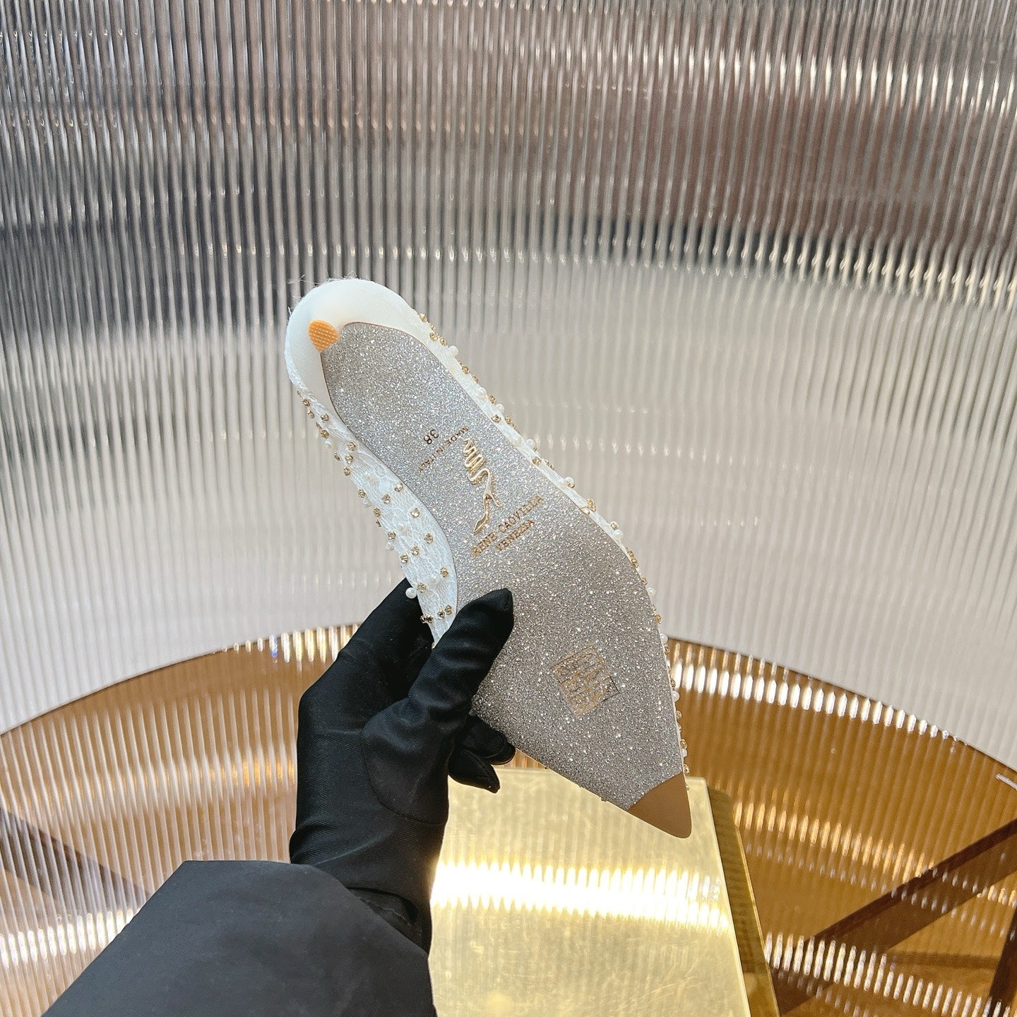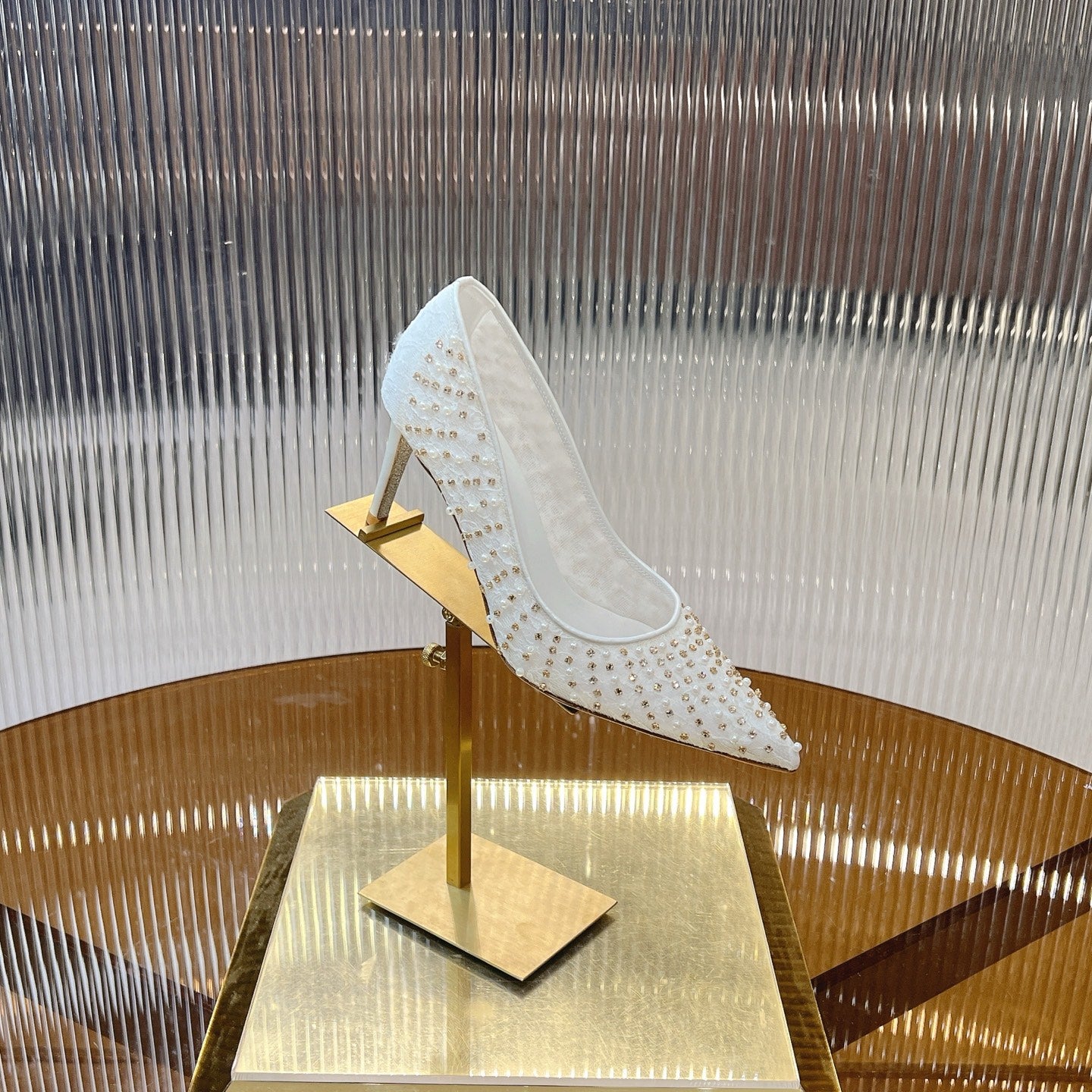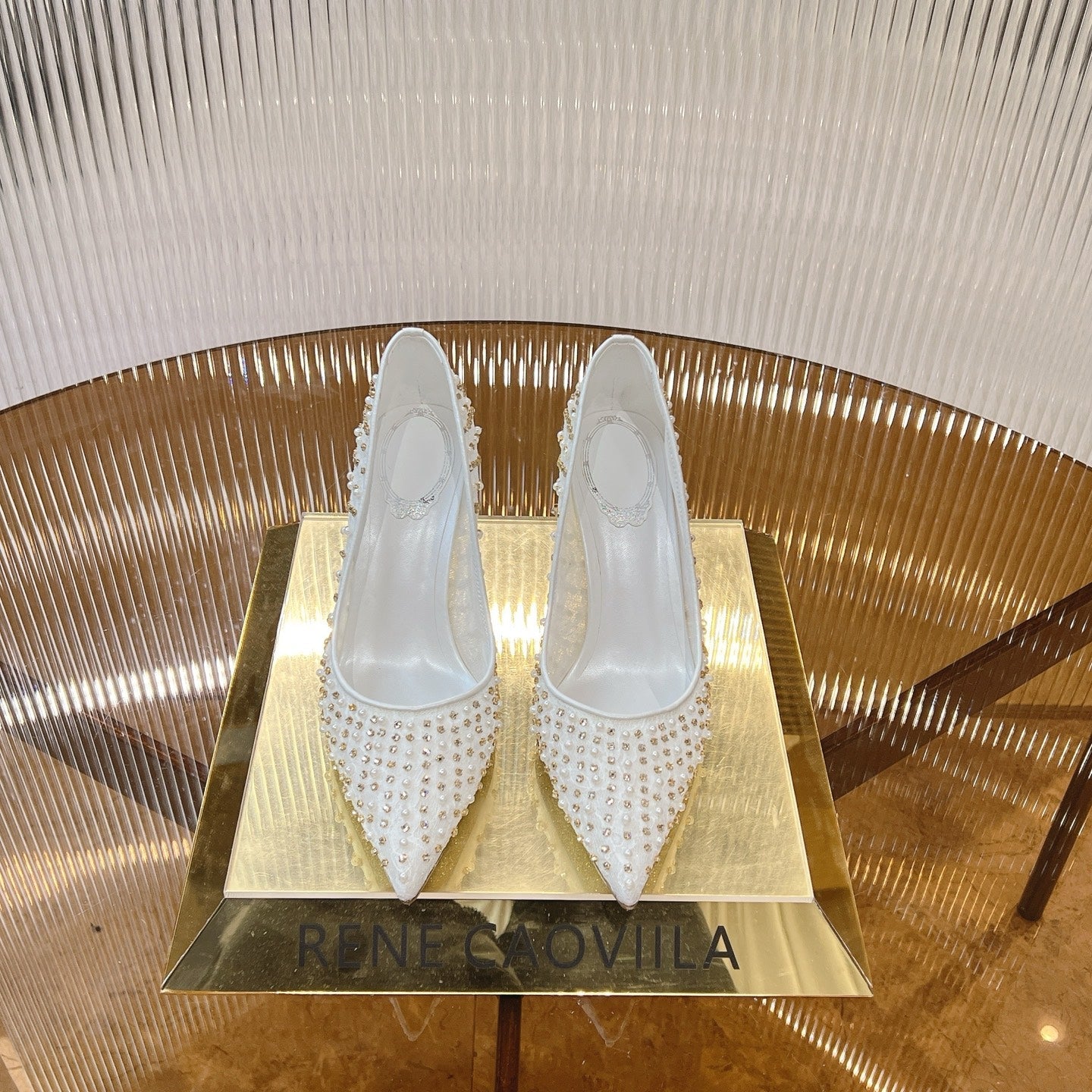 RC Scarpin Shoe 7.5cm White Rhinestone Sheepskin 281987