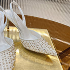 RC Slingback Shoe 7.5cm White Rhinestone Sheepskin 281985