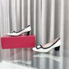 Viv Trompette Thick Heel Pumps White Cowhide Leather 283048