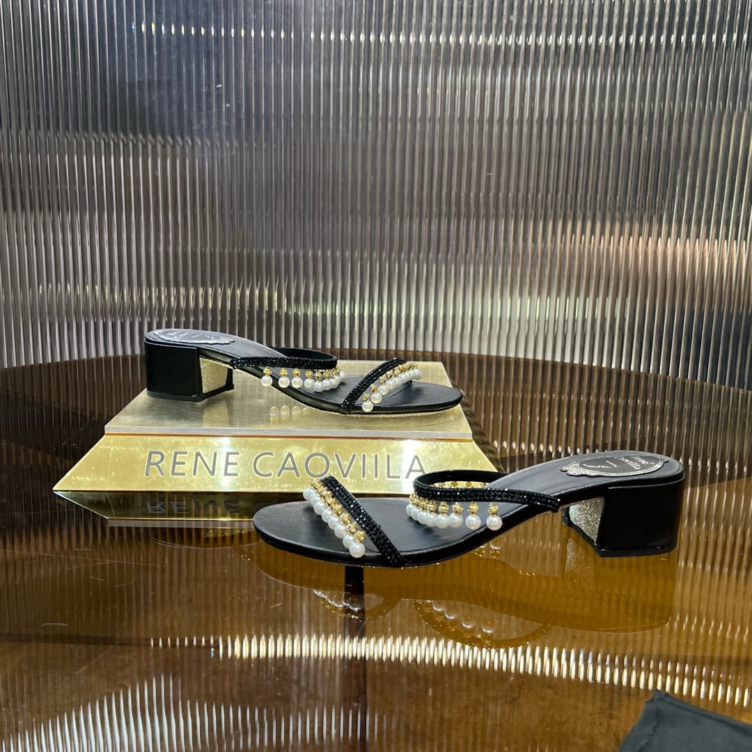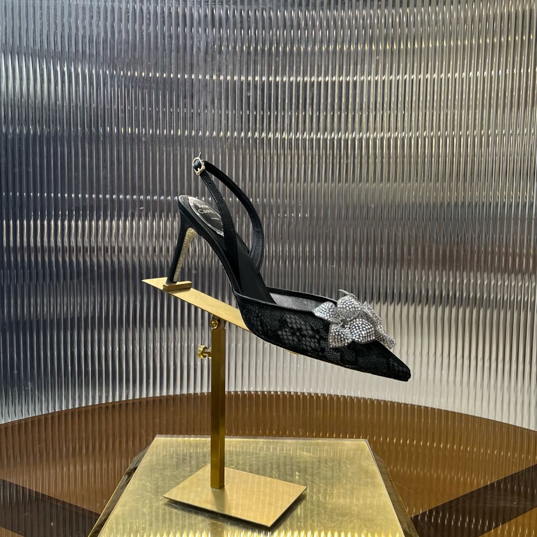 RC 25C Flower-Studded Diamond High-Heeled Sandals Black Sheepskin 174909