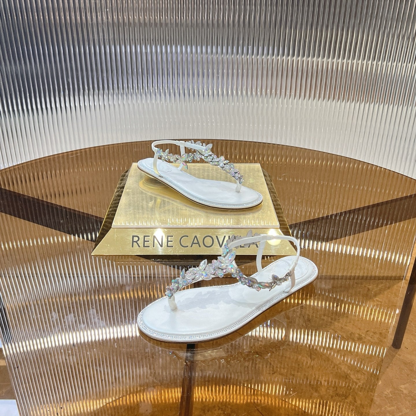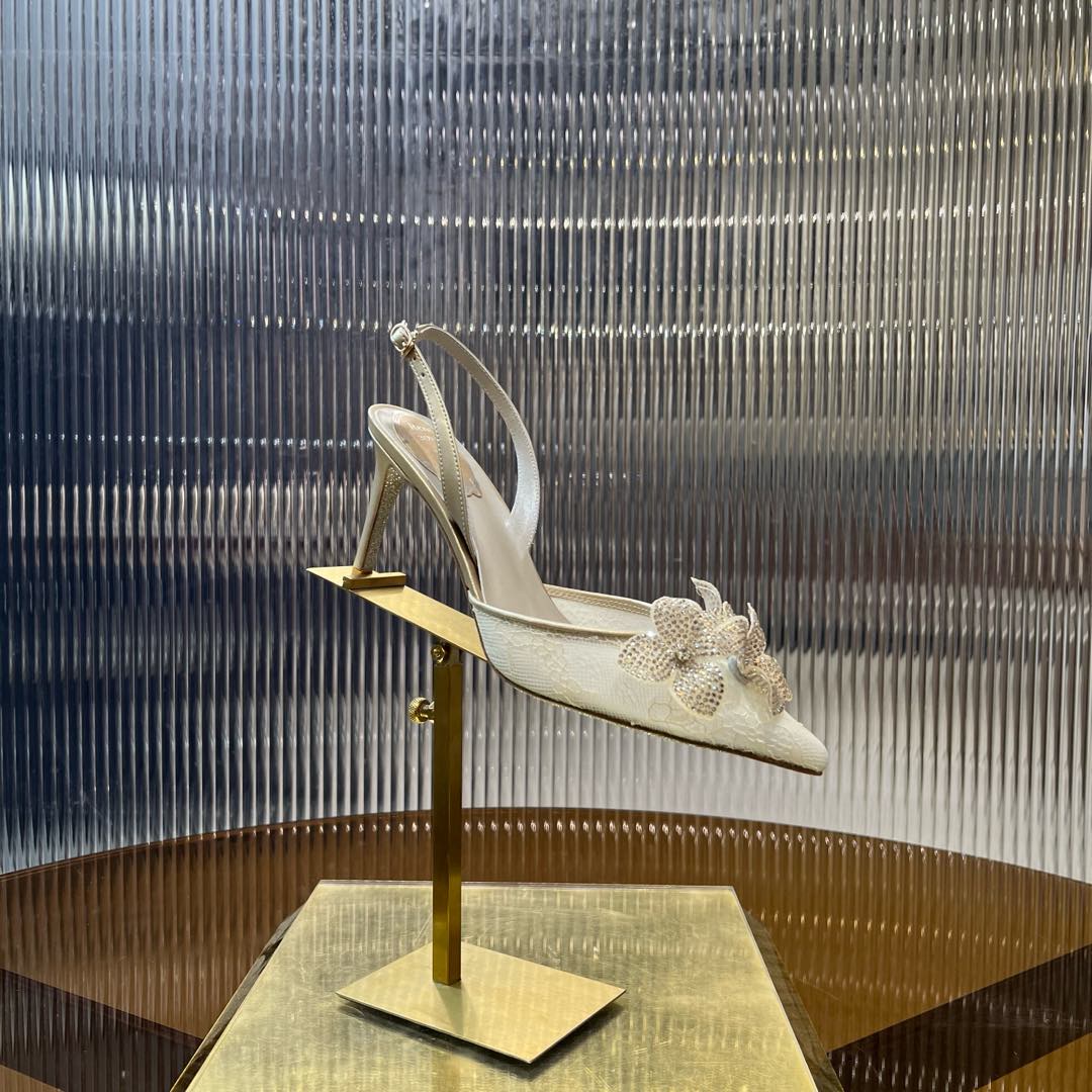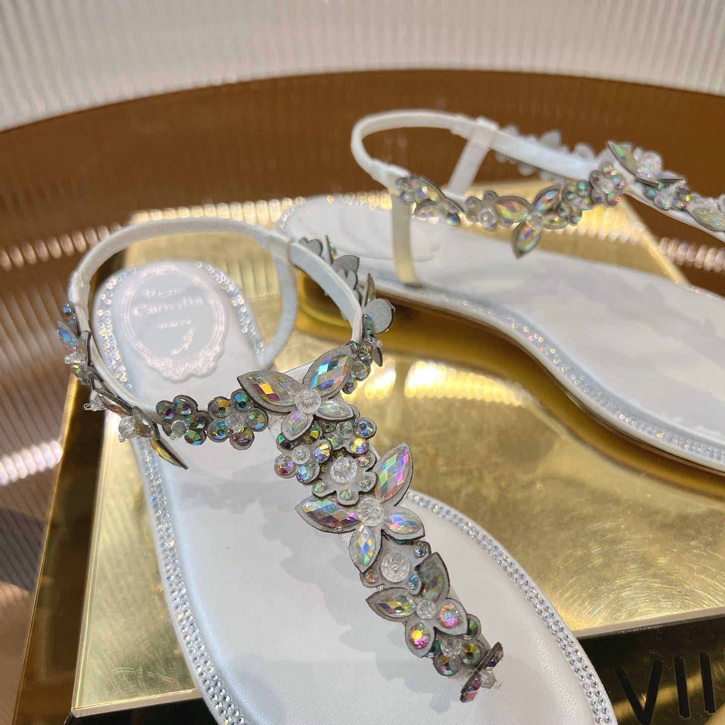 RC 25C Flower-Studded Diamond High-Heeled Sandals White Sheepskin 174905