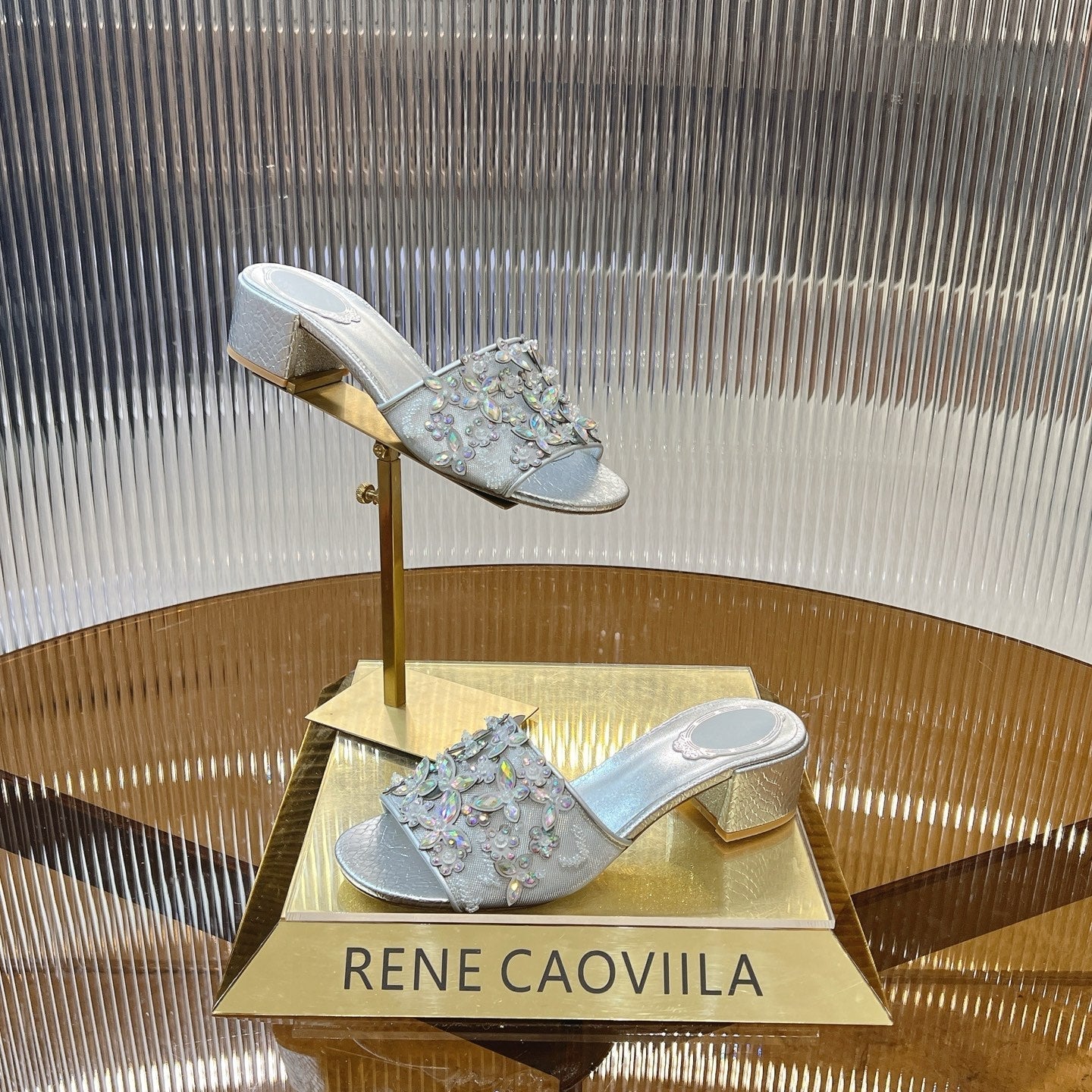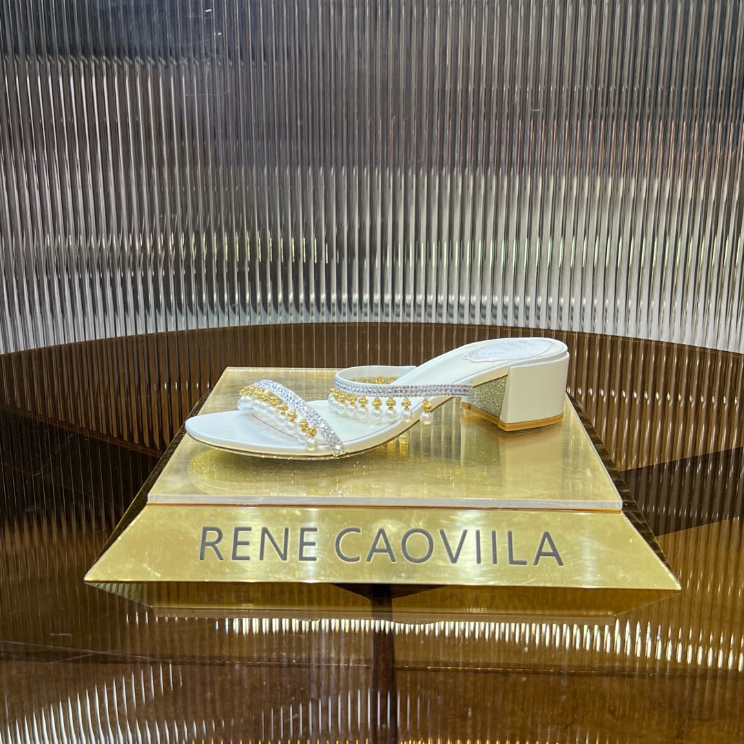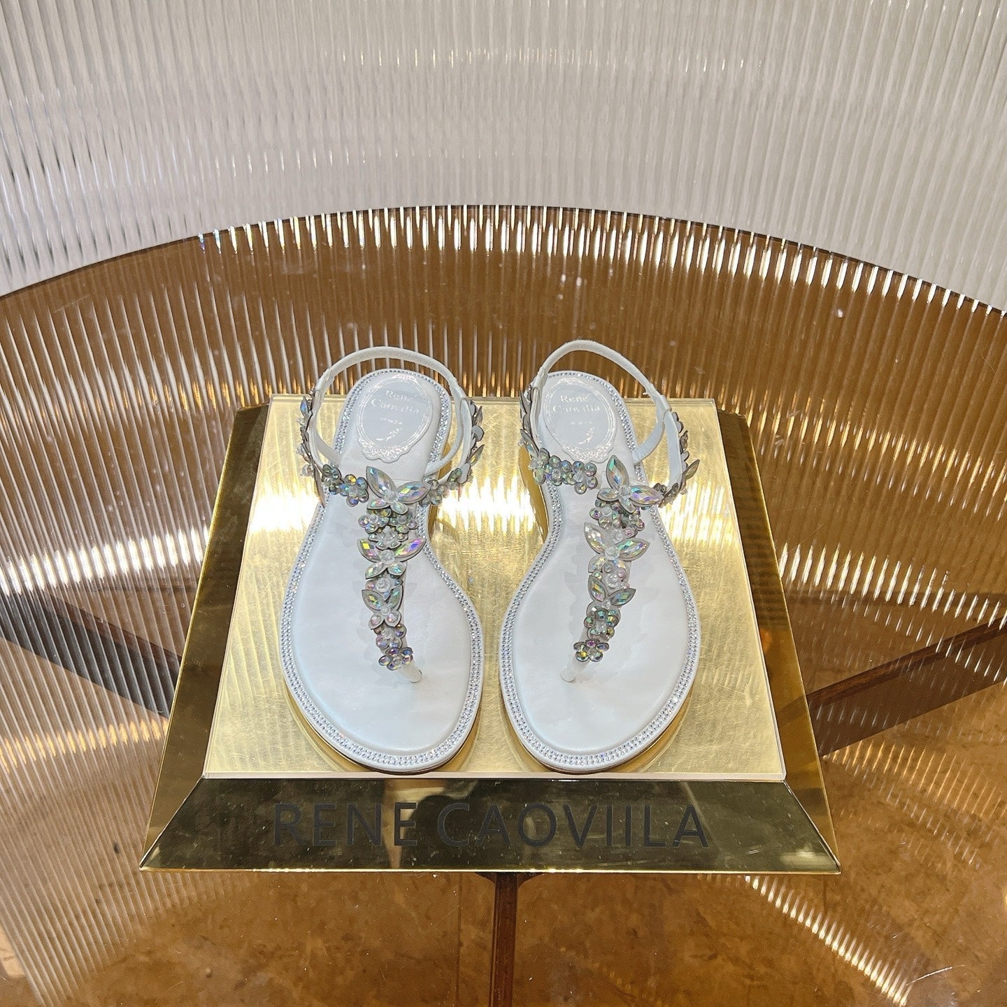 RC 25C Flower-Studded Diamond High-Heeled Sandals White Sheepskin 174905