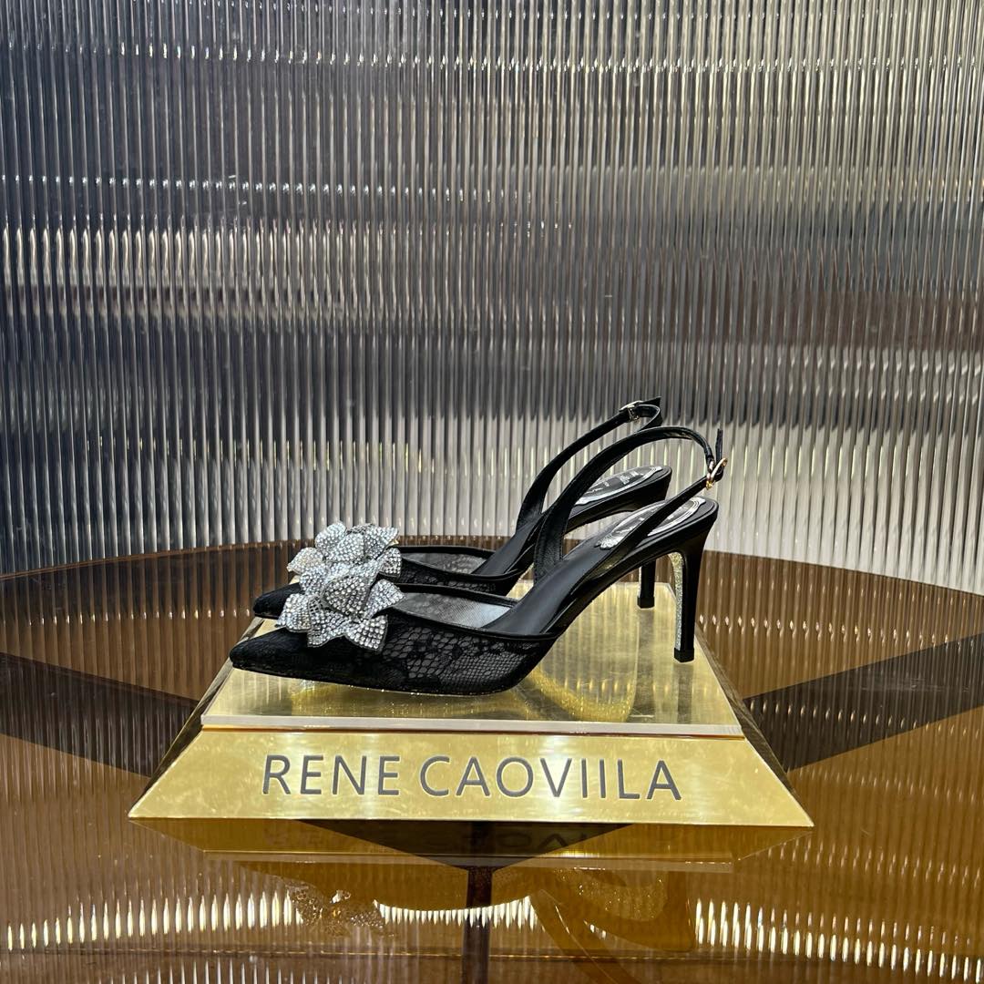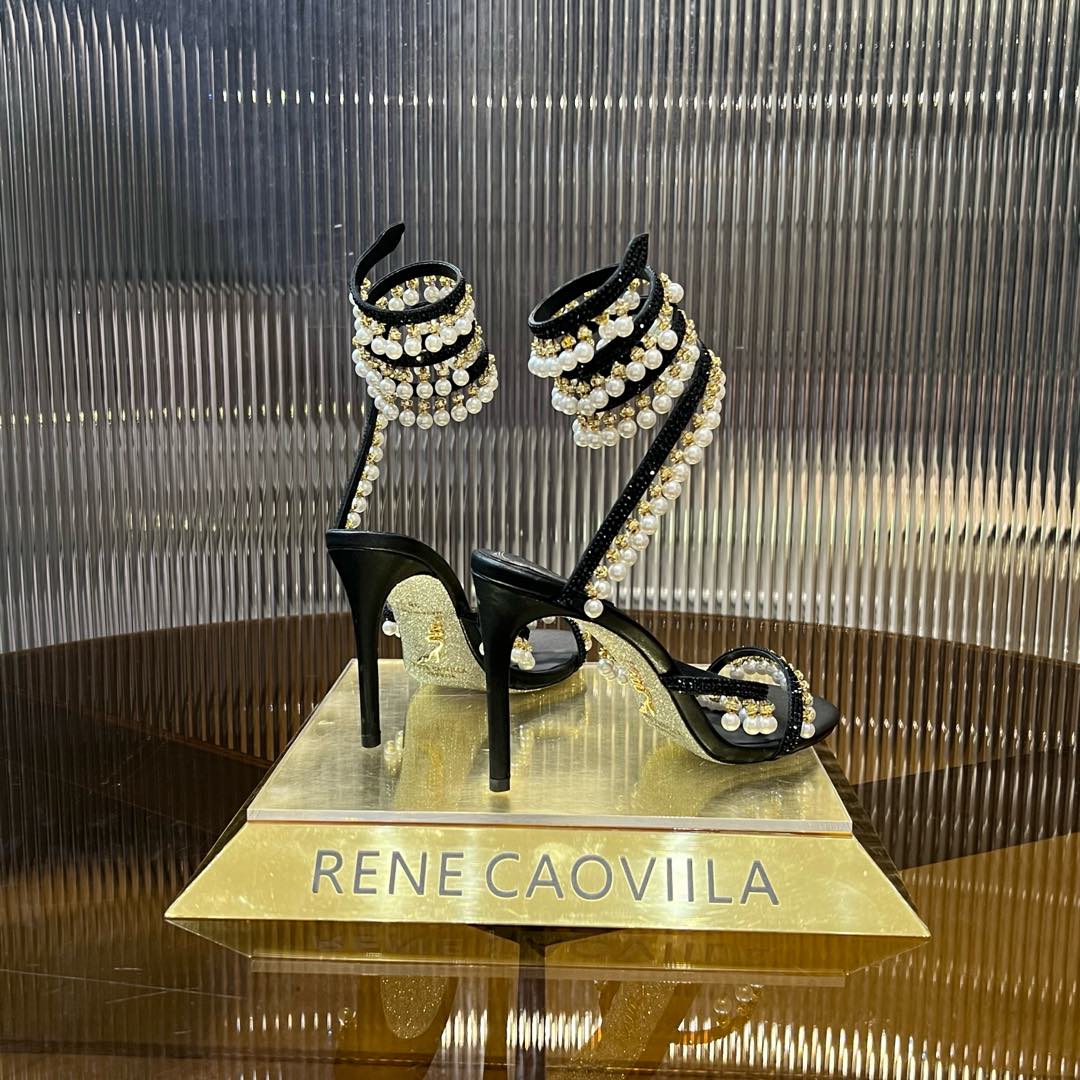 RC 25 Diamond Lace High Heeled Sandals Black Sheepskin 268055