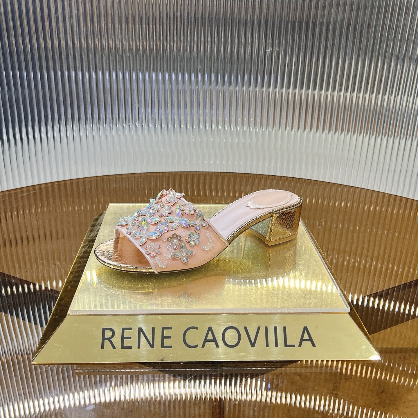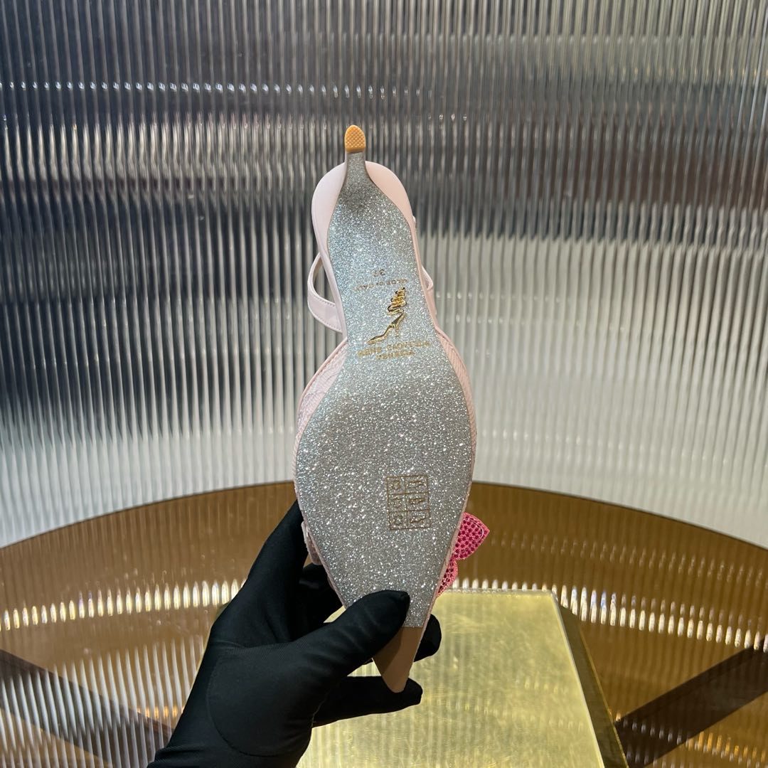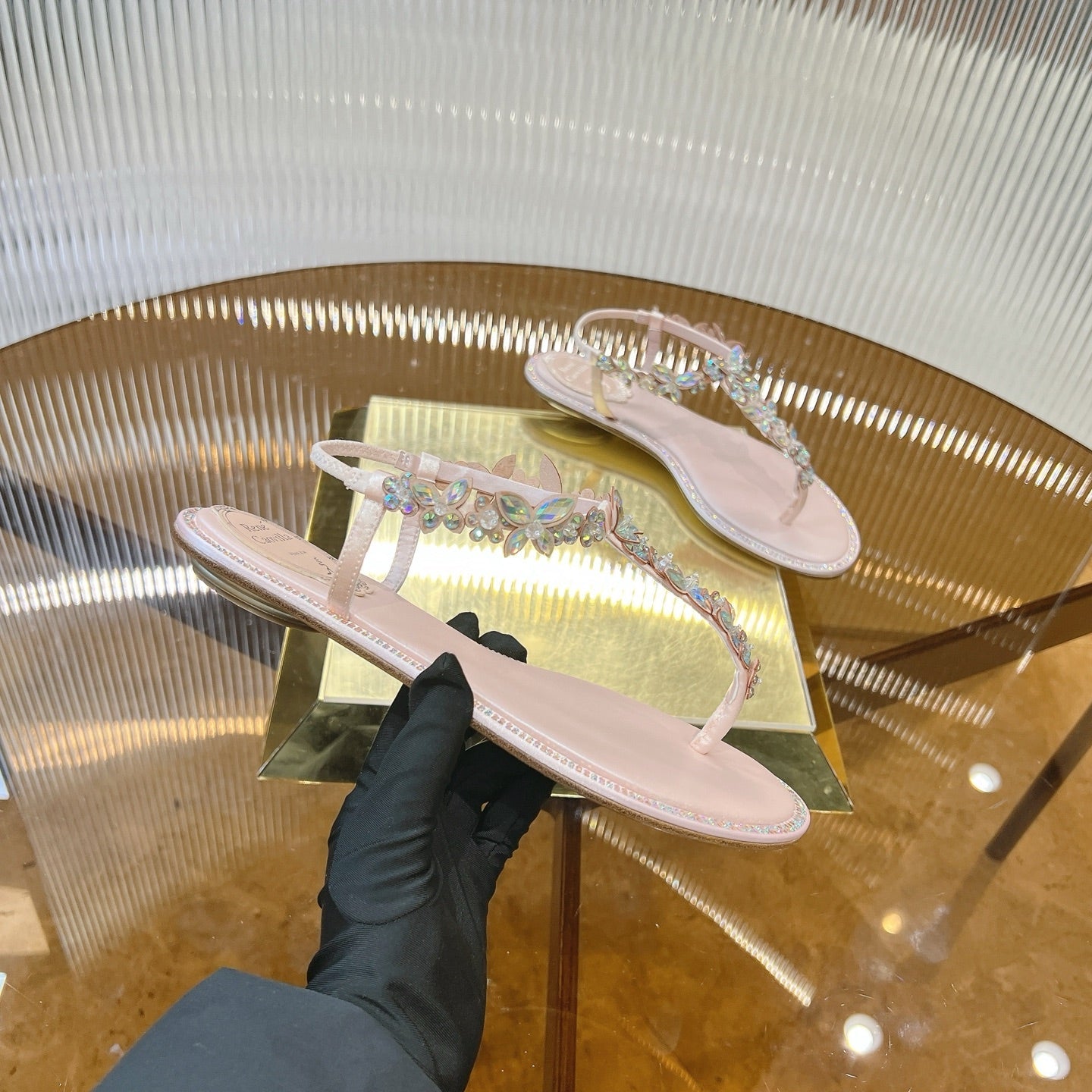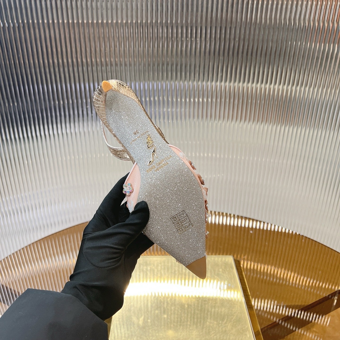 RC 25C Flower-Studded Diamond High-Heeled Sandals Pink Sheepskin 174913