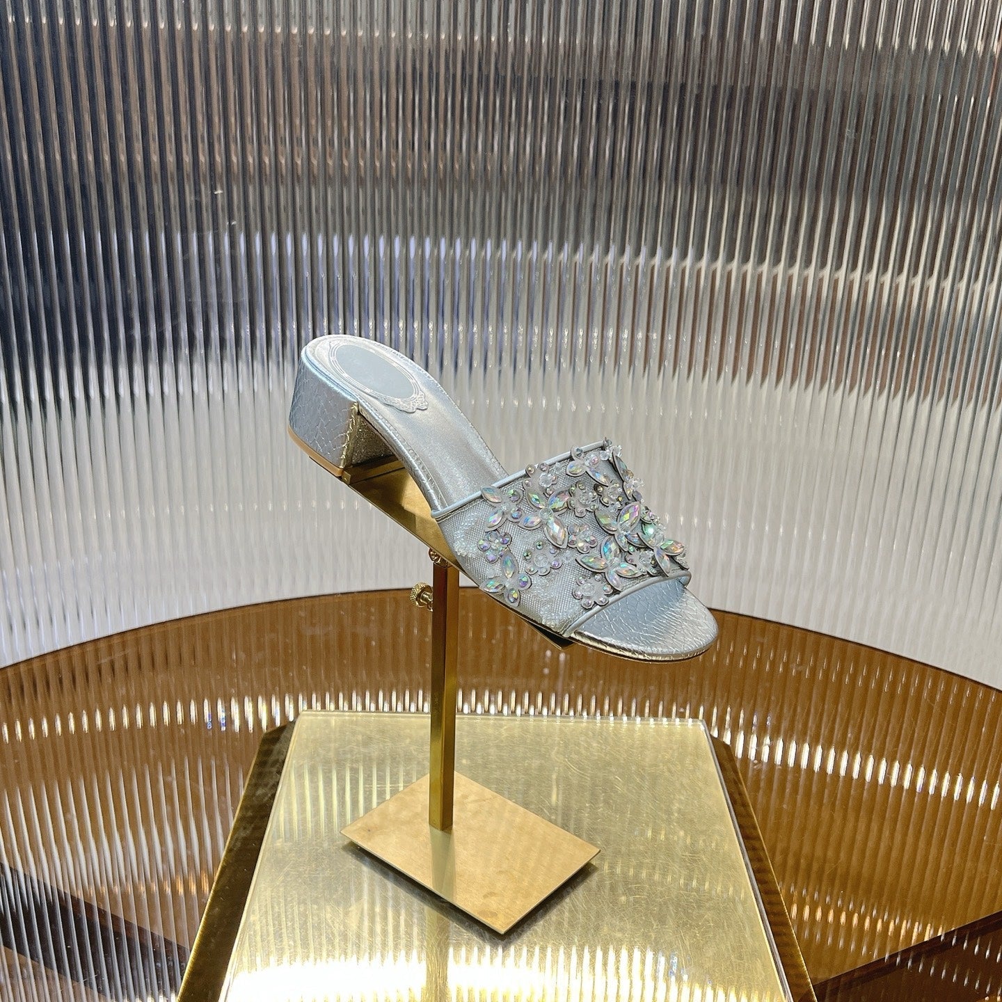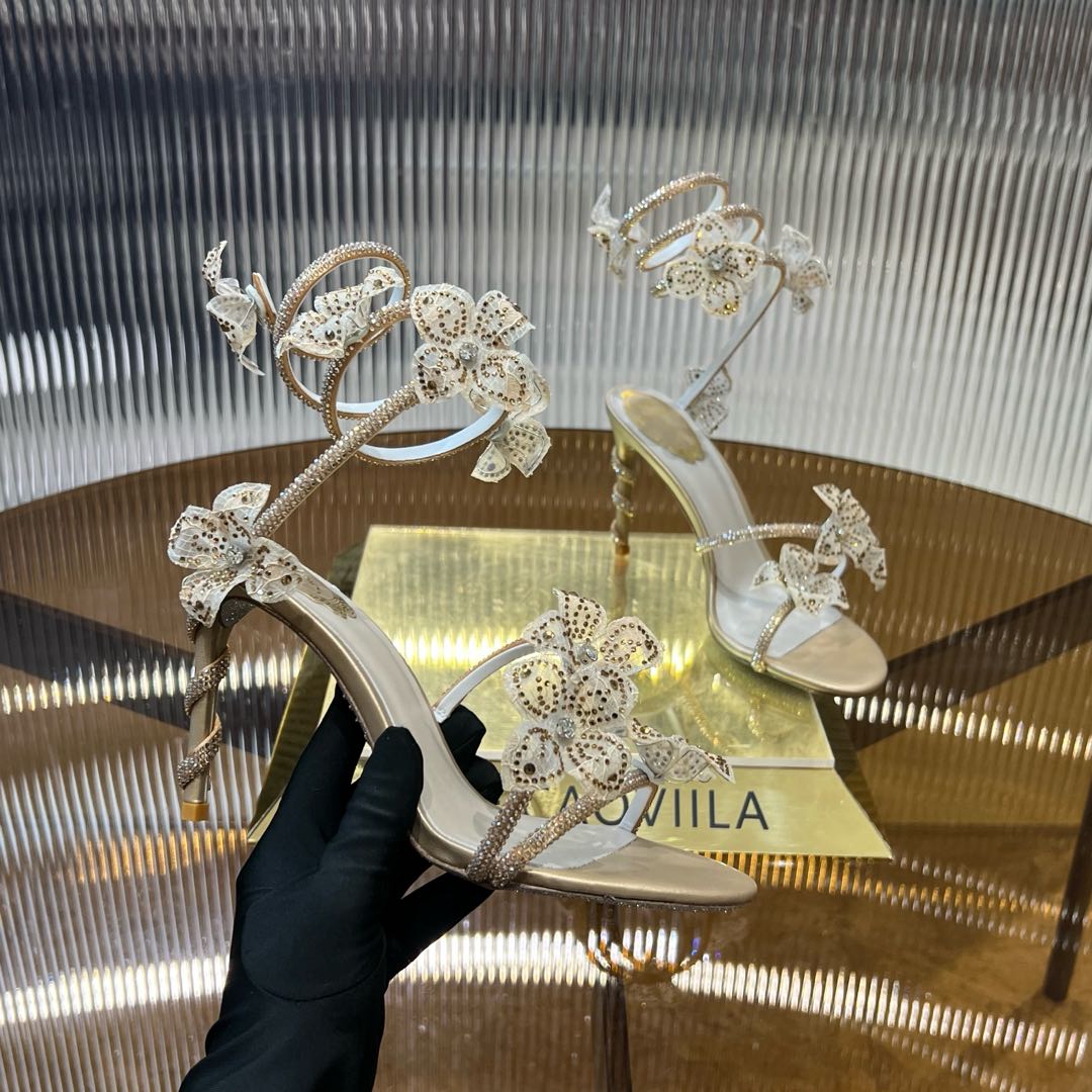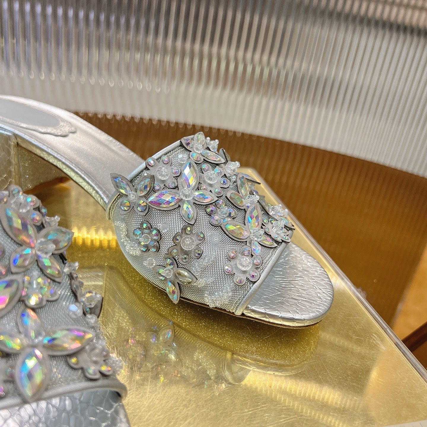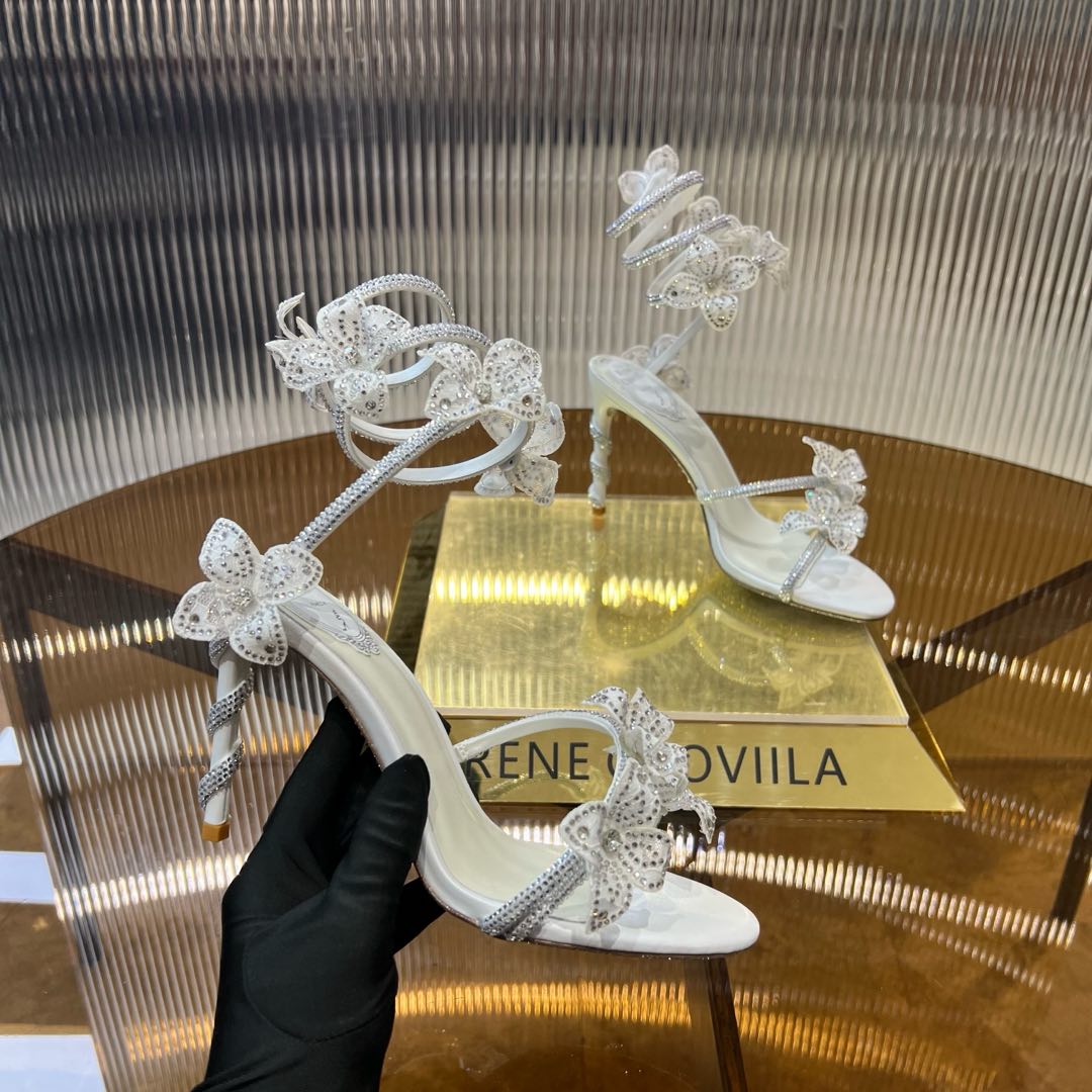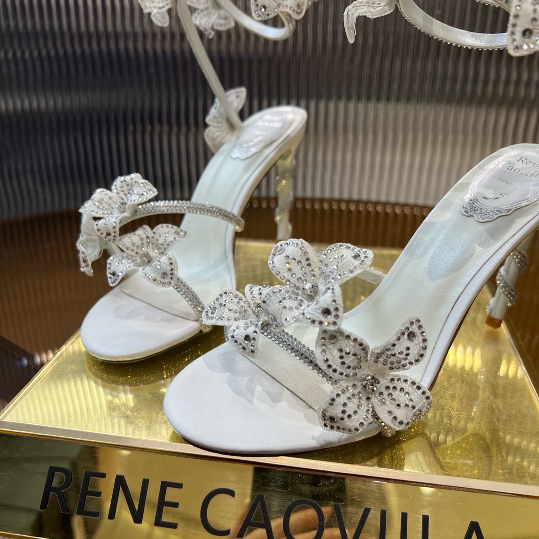 RC 25 Crystal Tassel High-Heeled Sandals White Silk Crystal Diamond 253540