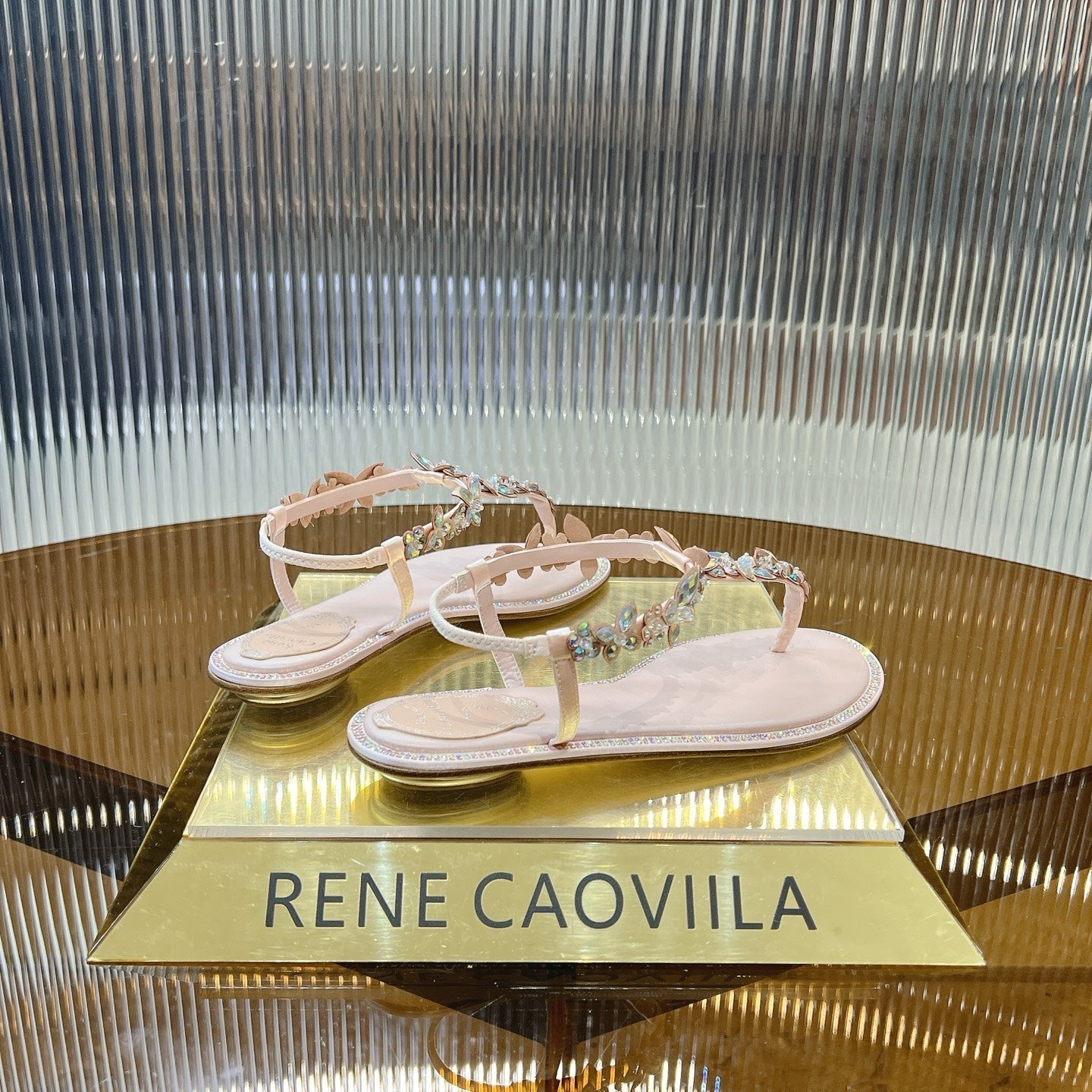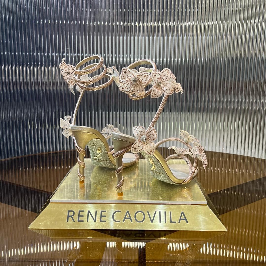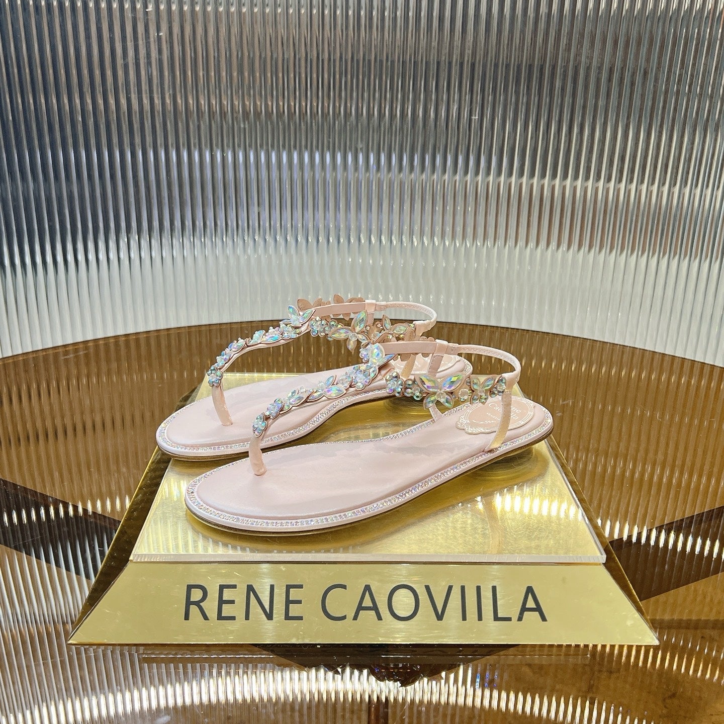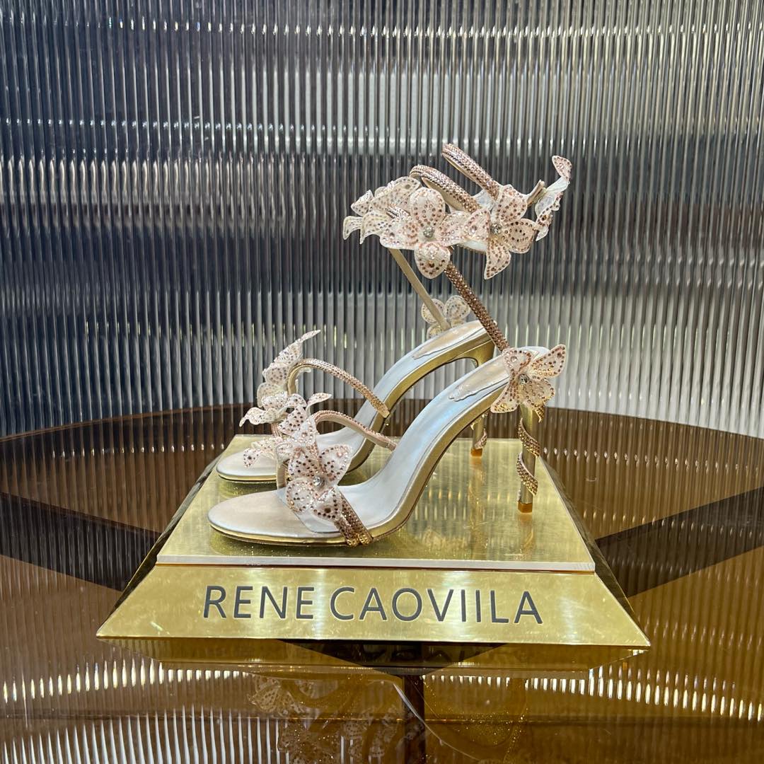 RC 25C Flower-Studded Diamond High-Heeled Sandals Beige Sheepskin 174917