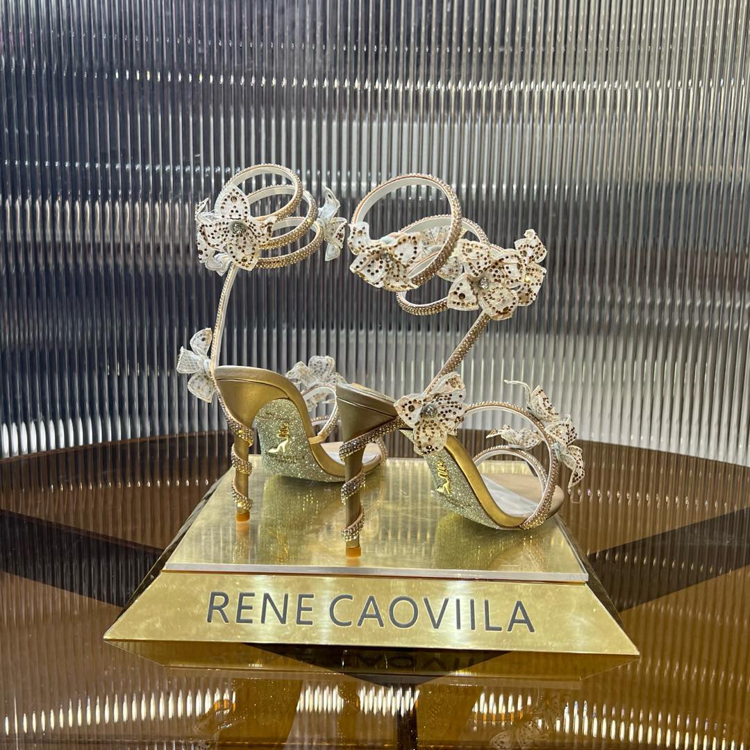 RC 25C High Heel Short Boots Mid-Tube Open-Toe Sandals Gold Sheepskin 174957