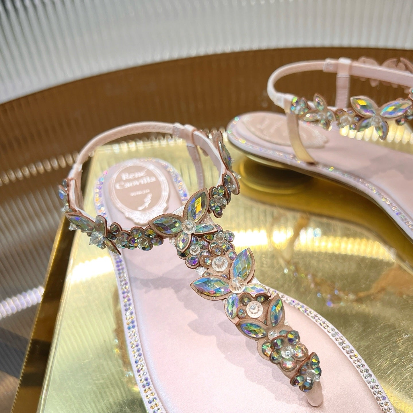 RC 25 Butterfly Flower Rhinestone Satin Sandals Pink Sheepskin 242920